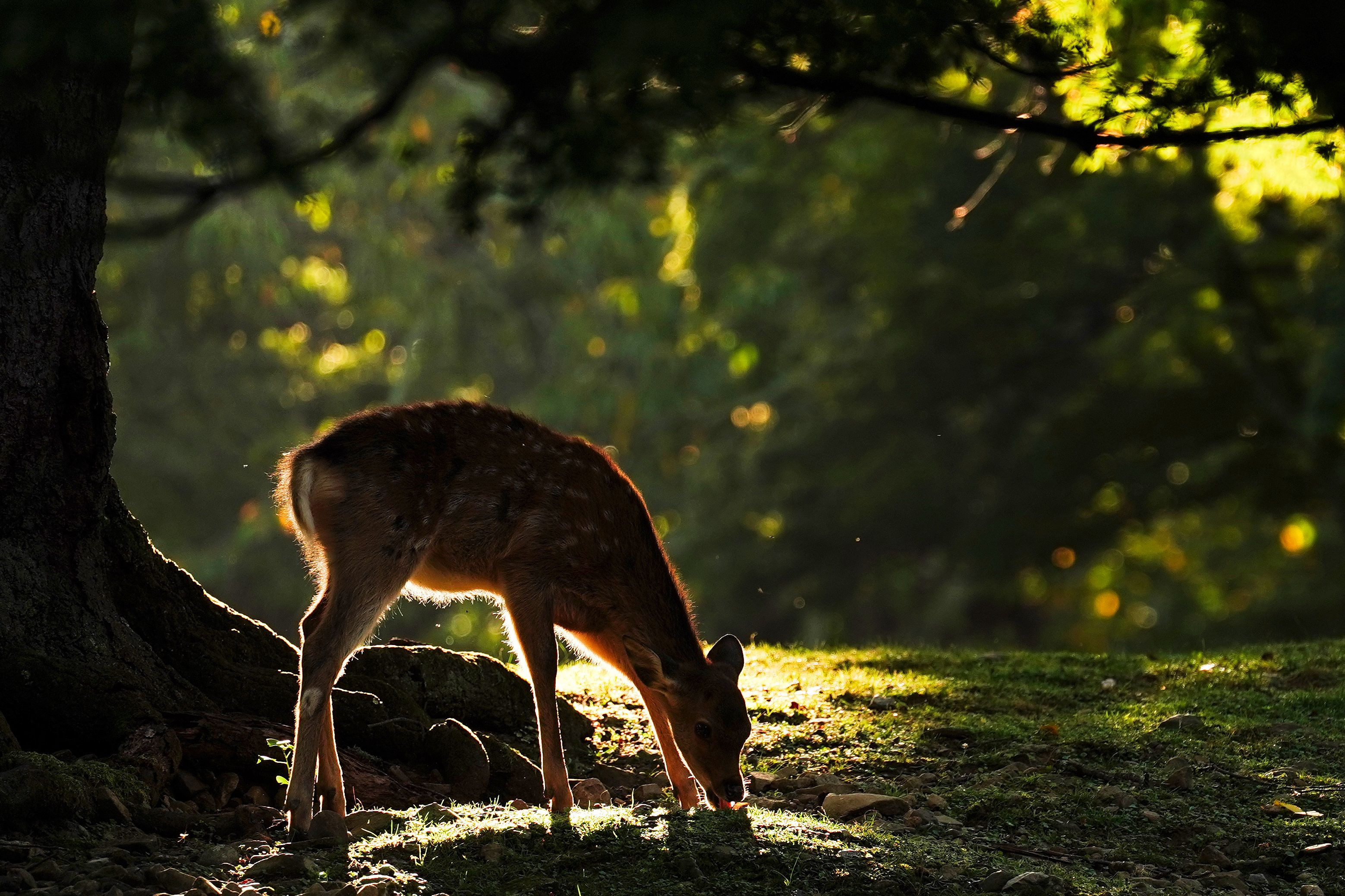 奈良公園の鹿さん 朝は観光客もまばらで、リラックスタイム