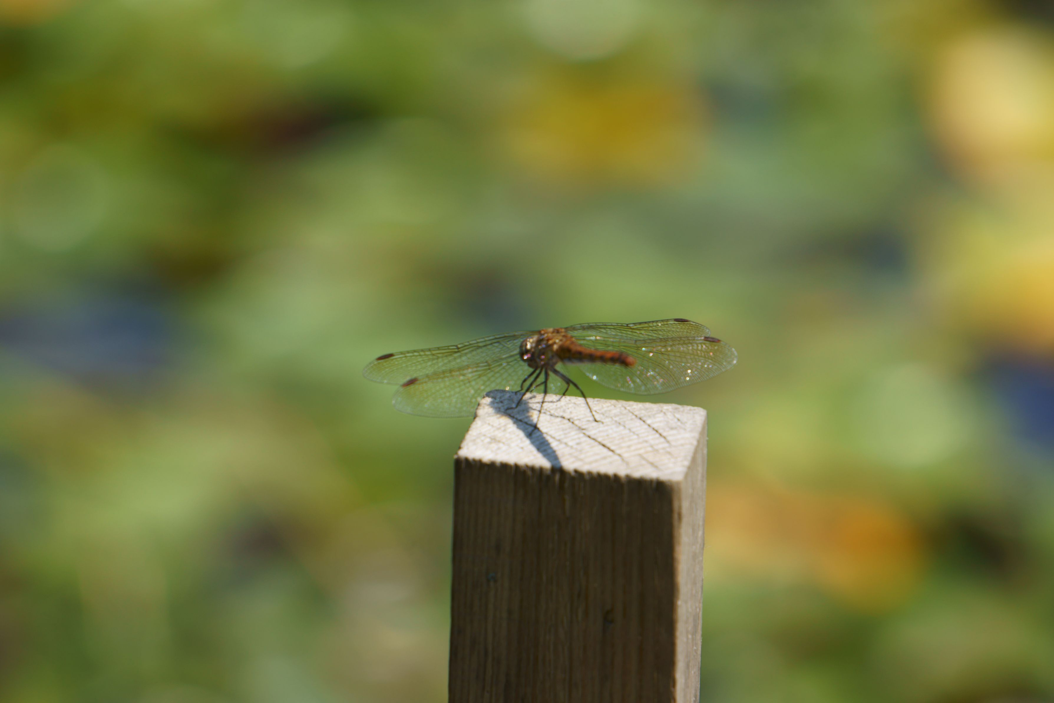 撮影していた近くの杭?にトンボが止まりました。撮影しようとすると飛び上がり、それを何度か繰り返し、「やっぱ難しいな?」と。立ち去ろうとしたらこの体勢(1枚目)で落ち着いてくれました。
