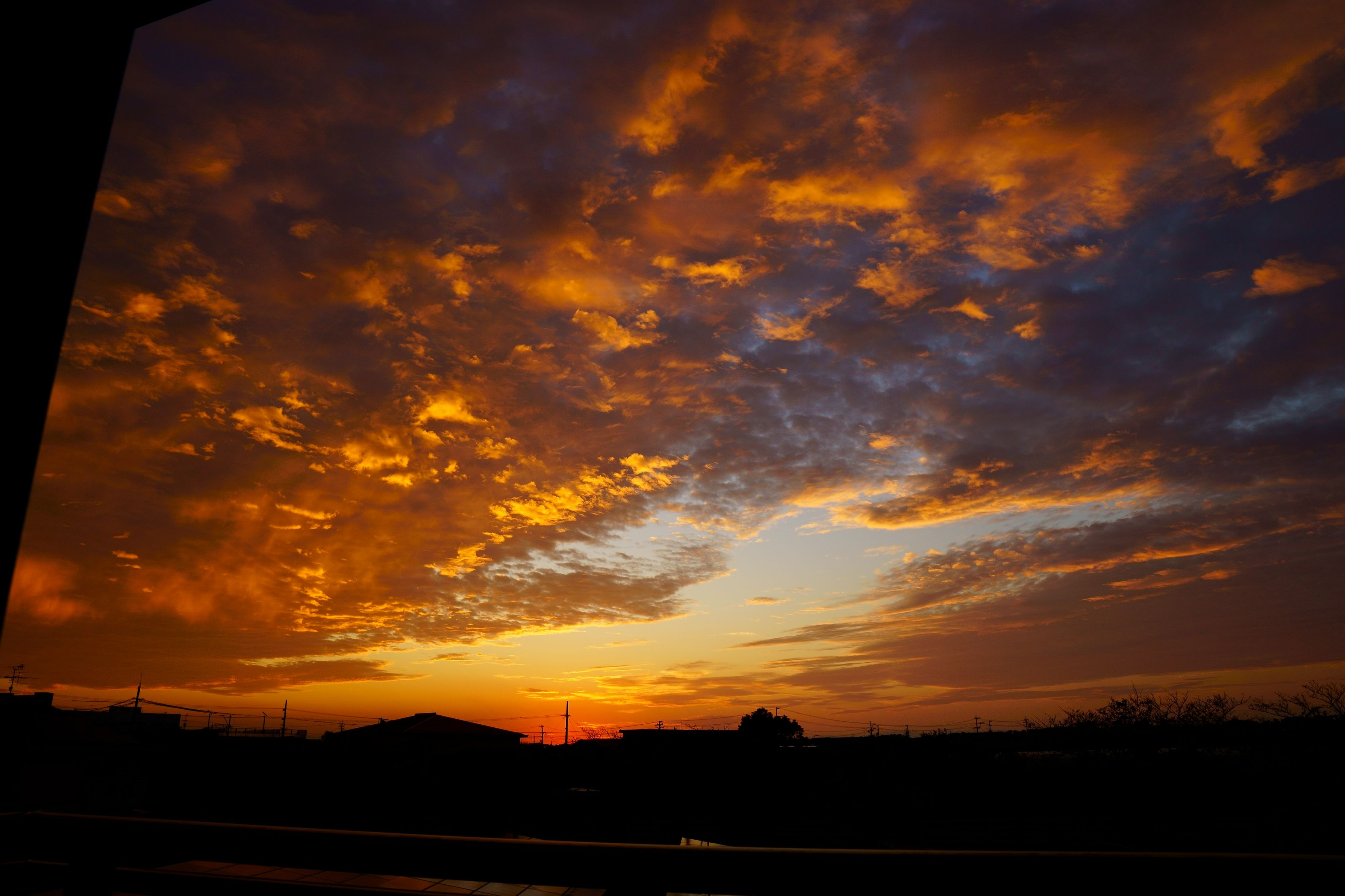 家のベランダからの朝焼けです。