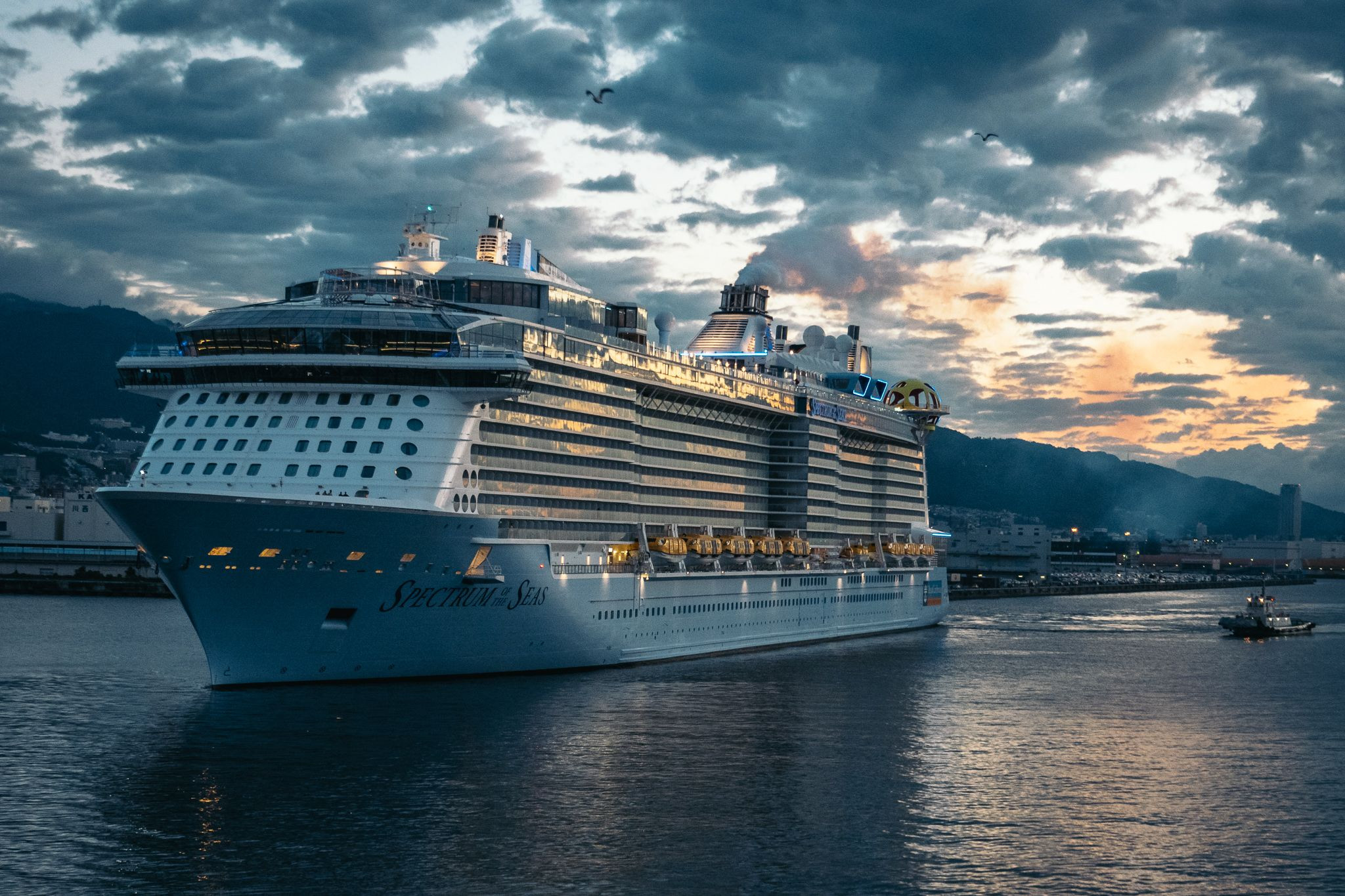 早朝の神戸に入港前のスペクトラム・オブ・ザ・シーズ 世界最大級で6位くらいの大きさだとか