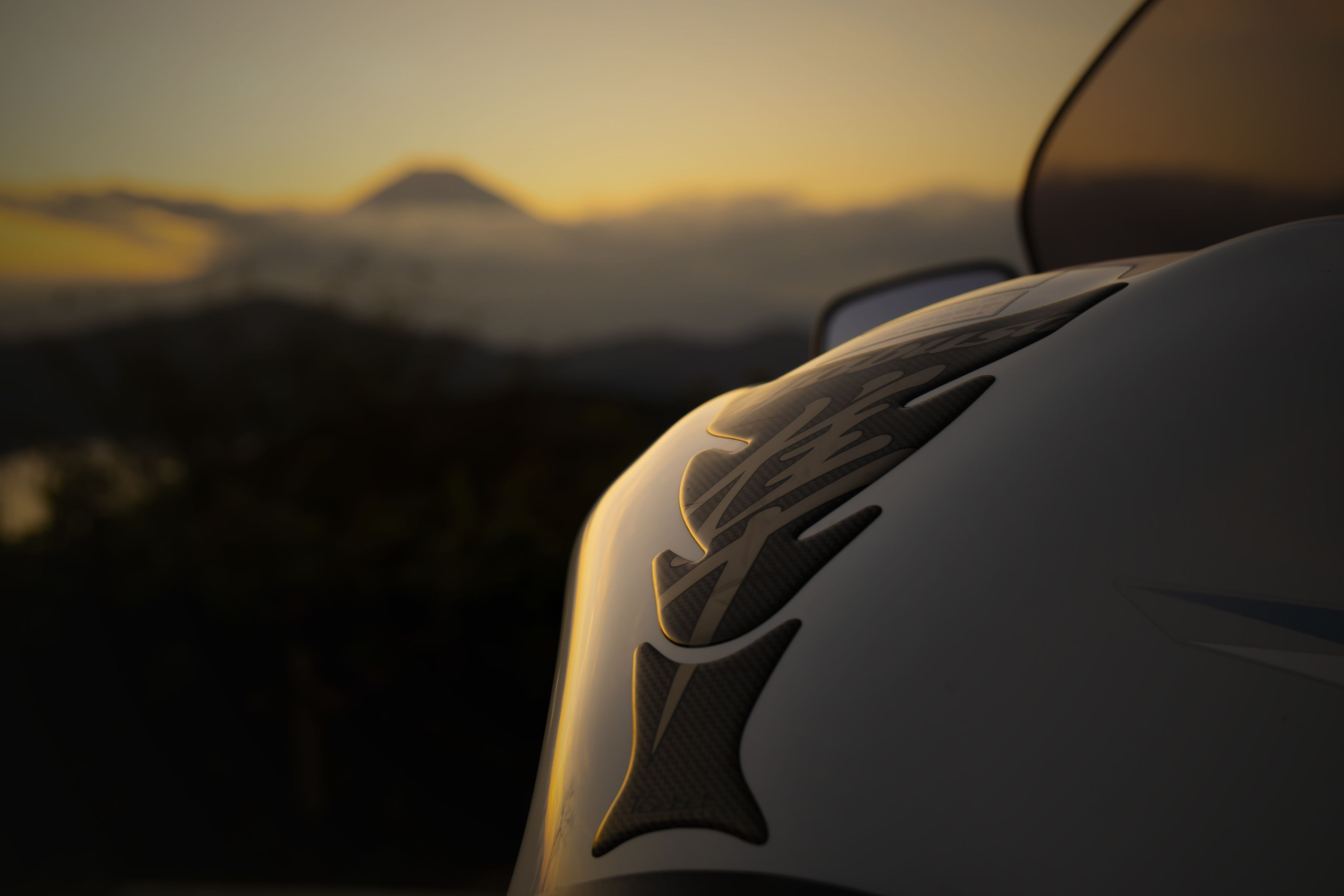隼のタンク越しに富士山を撮りました。