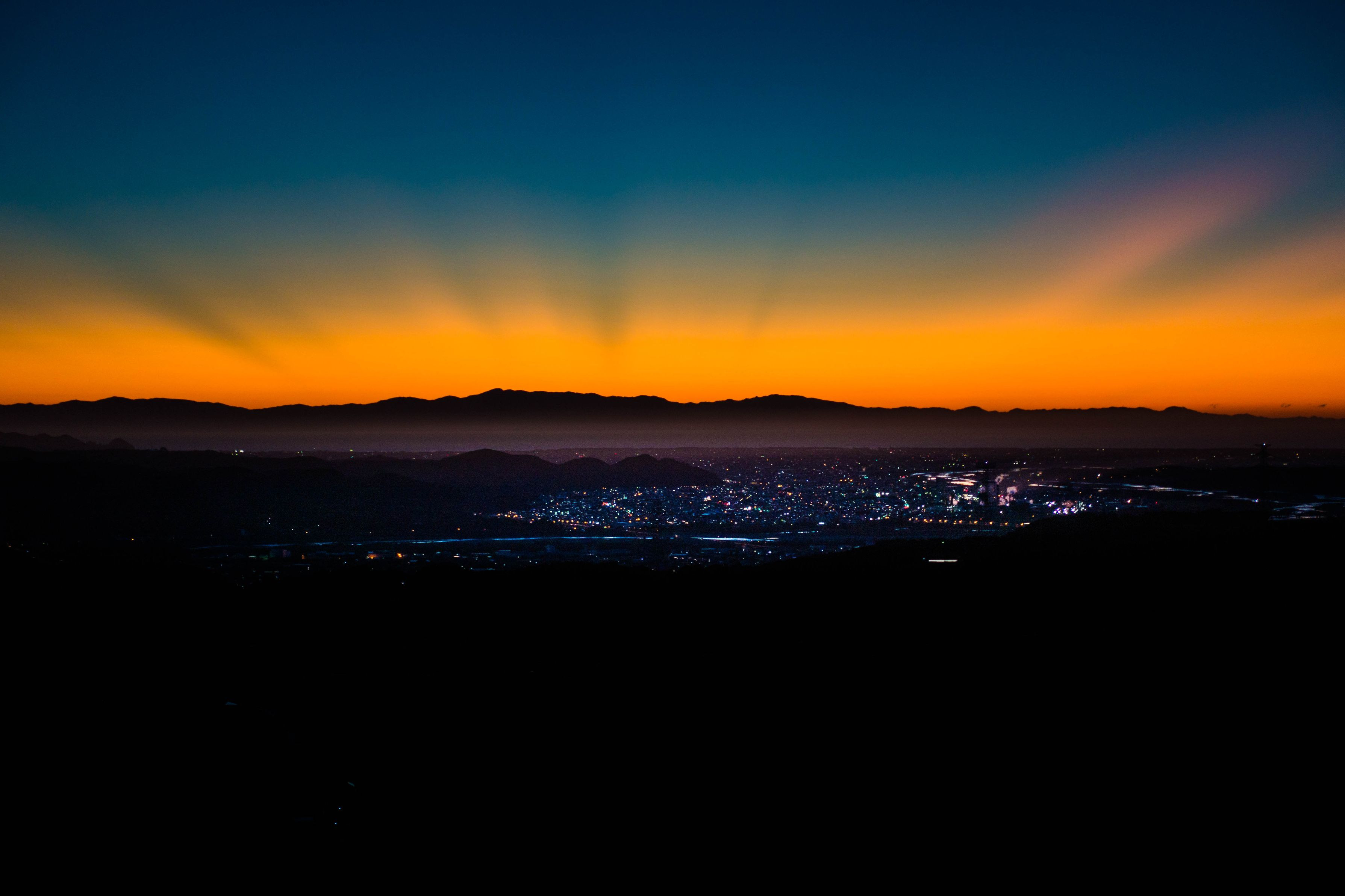 わが街の富士山ビュースポットから眺める日の出間近の東の空。 駿河湾の向こうに伊豆半島の山並みがシルエットで見えます。 太陽が顔を出すまでのわずかな時間に現れる奇跡の光景です