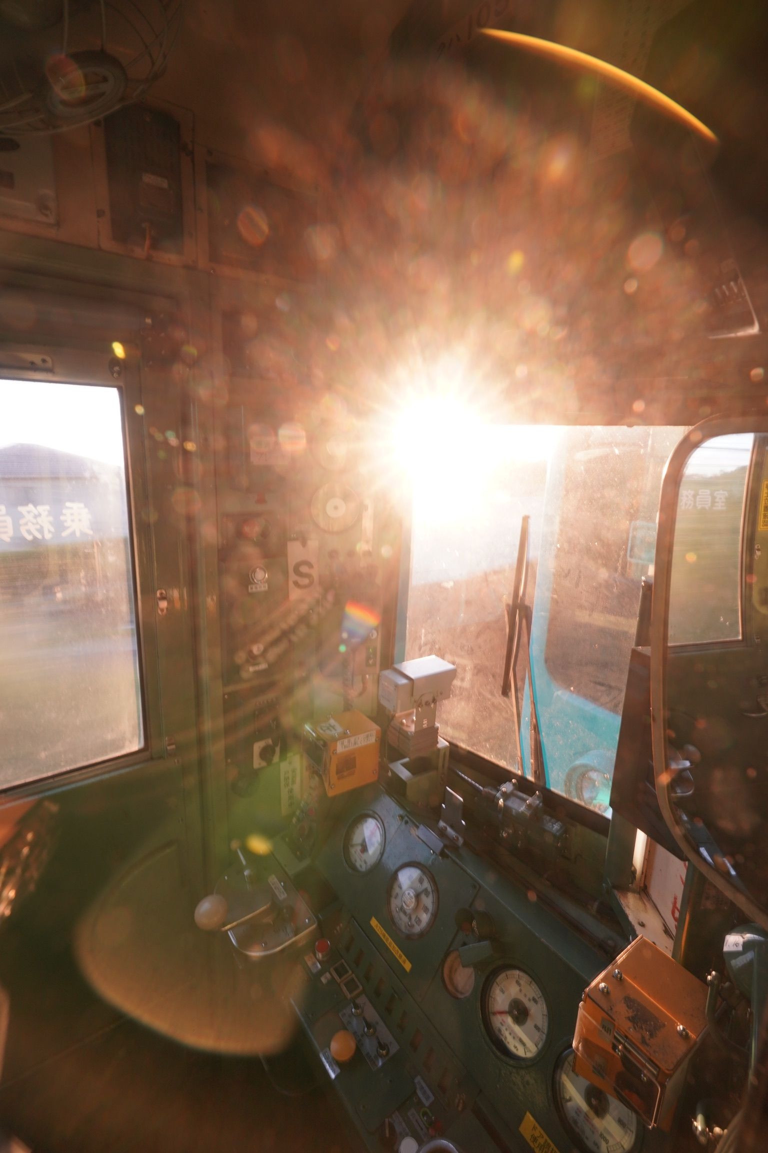 103系由来の105系運転台に眩しく日が射しました。 終着和歌山へ向けて、最後の力走!