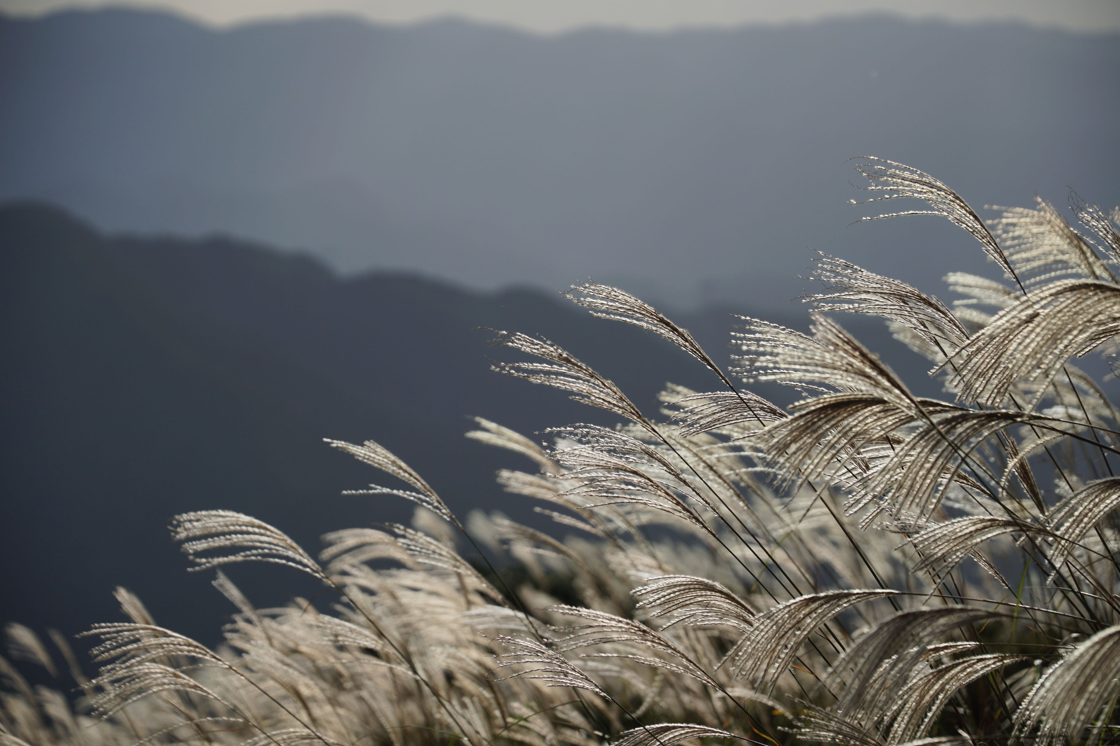 葛城高原にて。 ススキの穂が時により、金色にも銀色にも見えました。