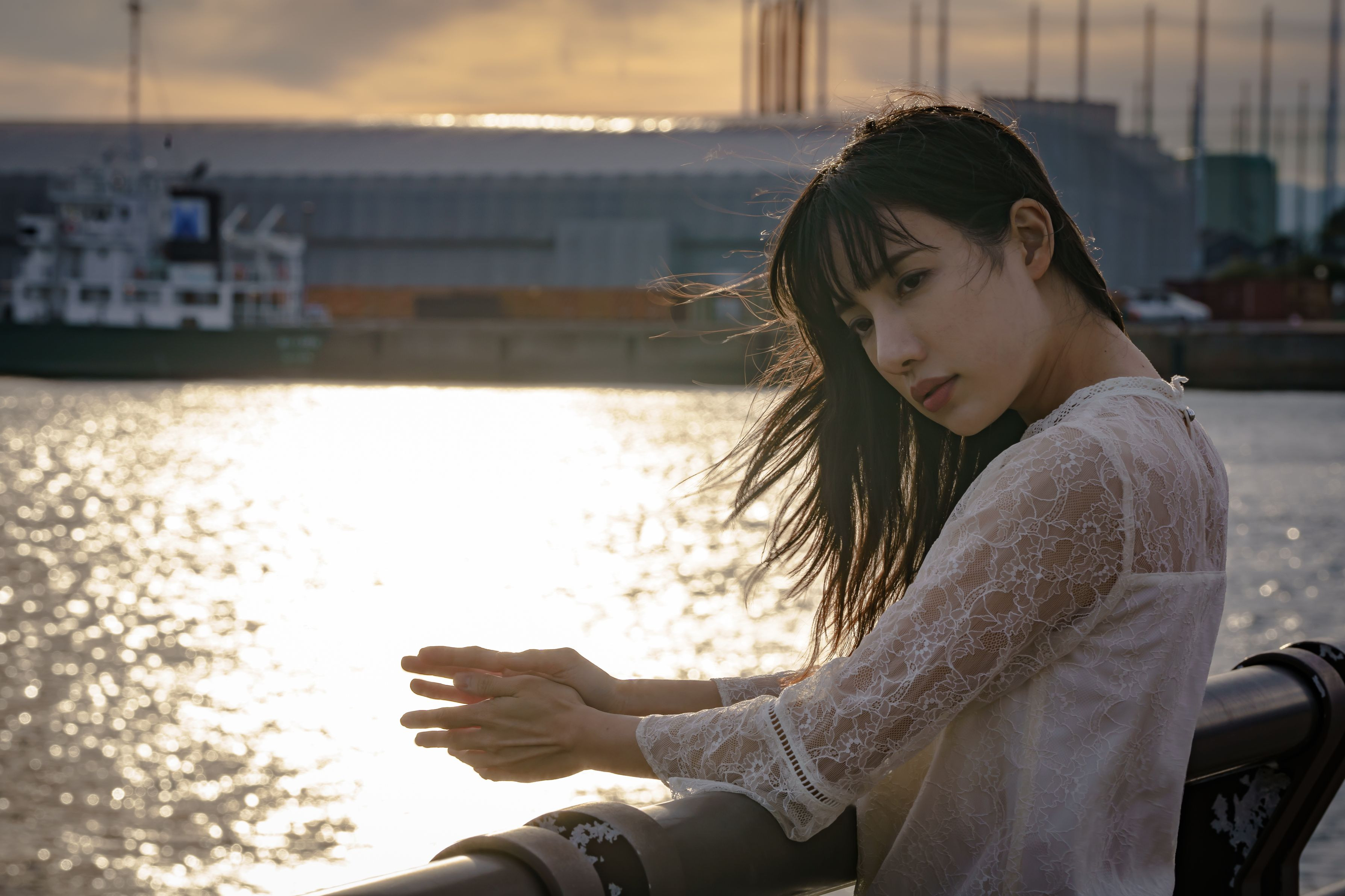離した手のぬくもりは、まだ、掌の中に残っているのに… 貴方はもういない… というイメージで少し切ない感じがすきです。 model:mio Location:Nagoya Port