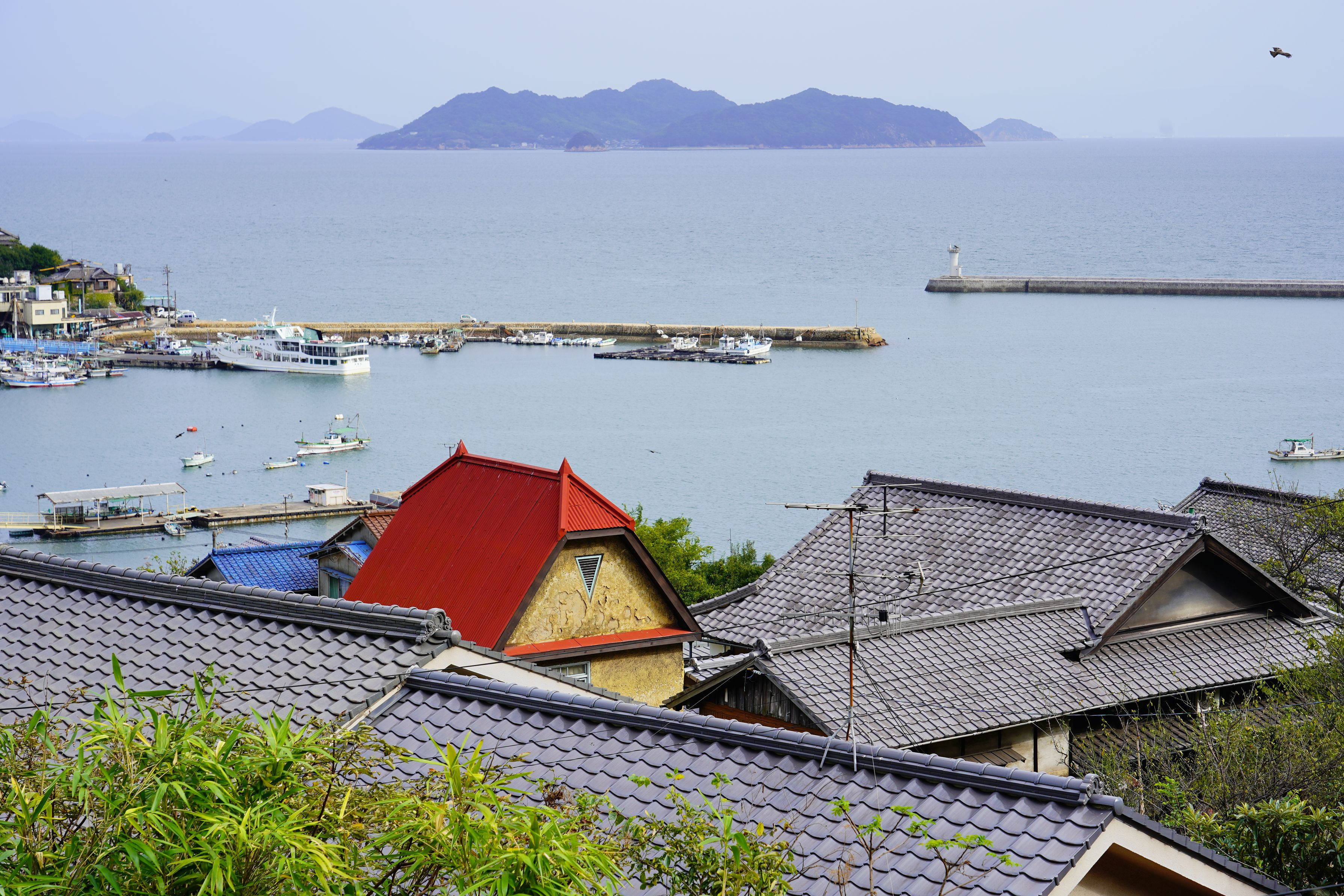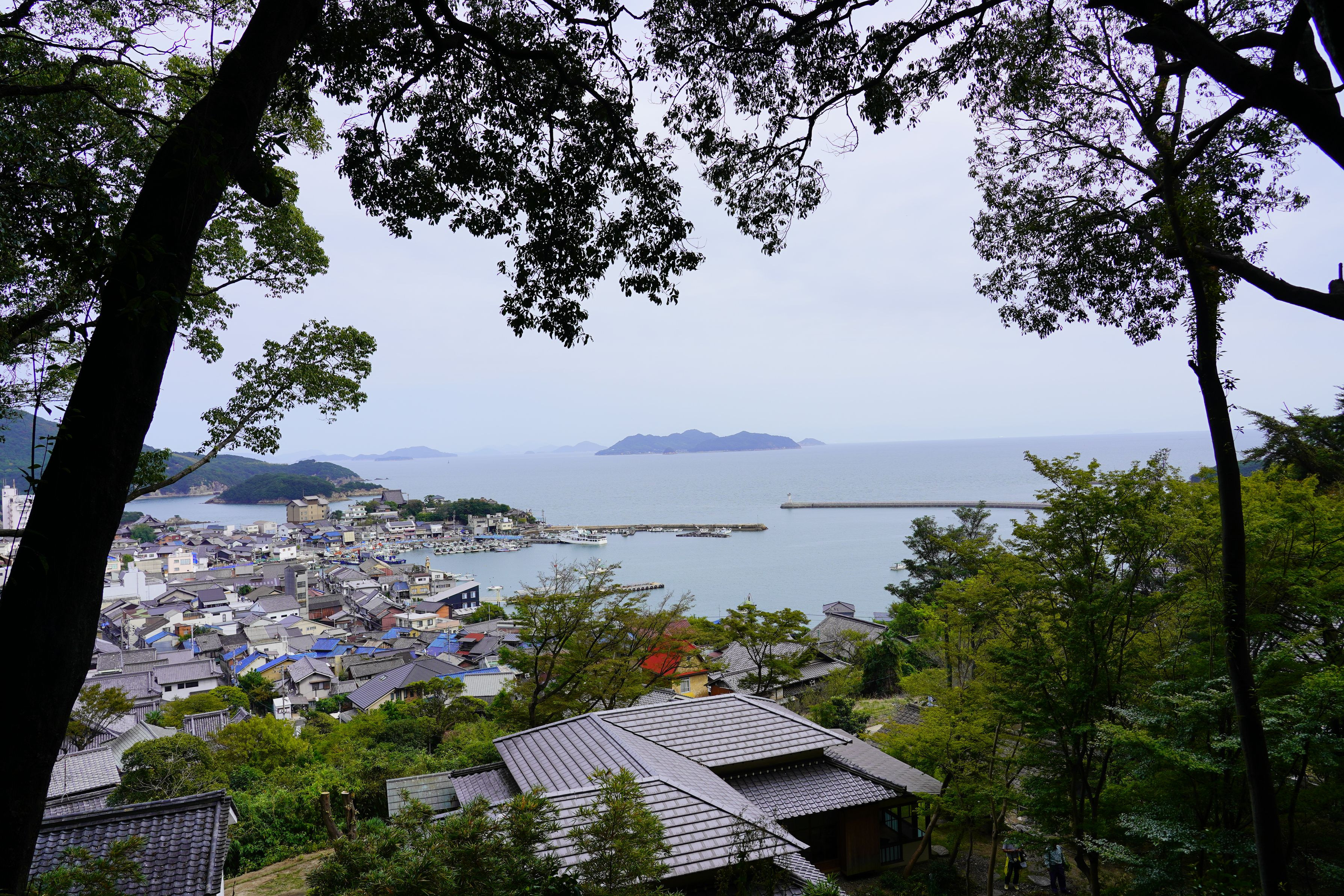 昭和初期の鞆別荘を再生させたものだそうです。その裏山からの景色は…鞆の浦を一望。 あの、「ポニョの家」も眼前に。