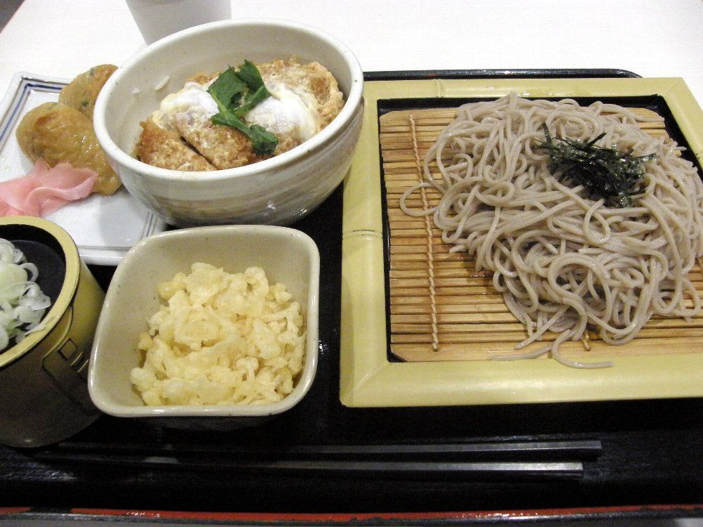 かつ丼定食(ざるそば)+天かす+いなり寿司