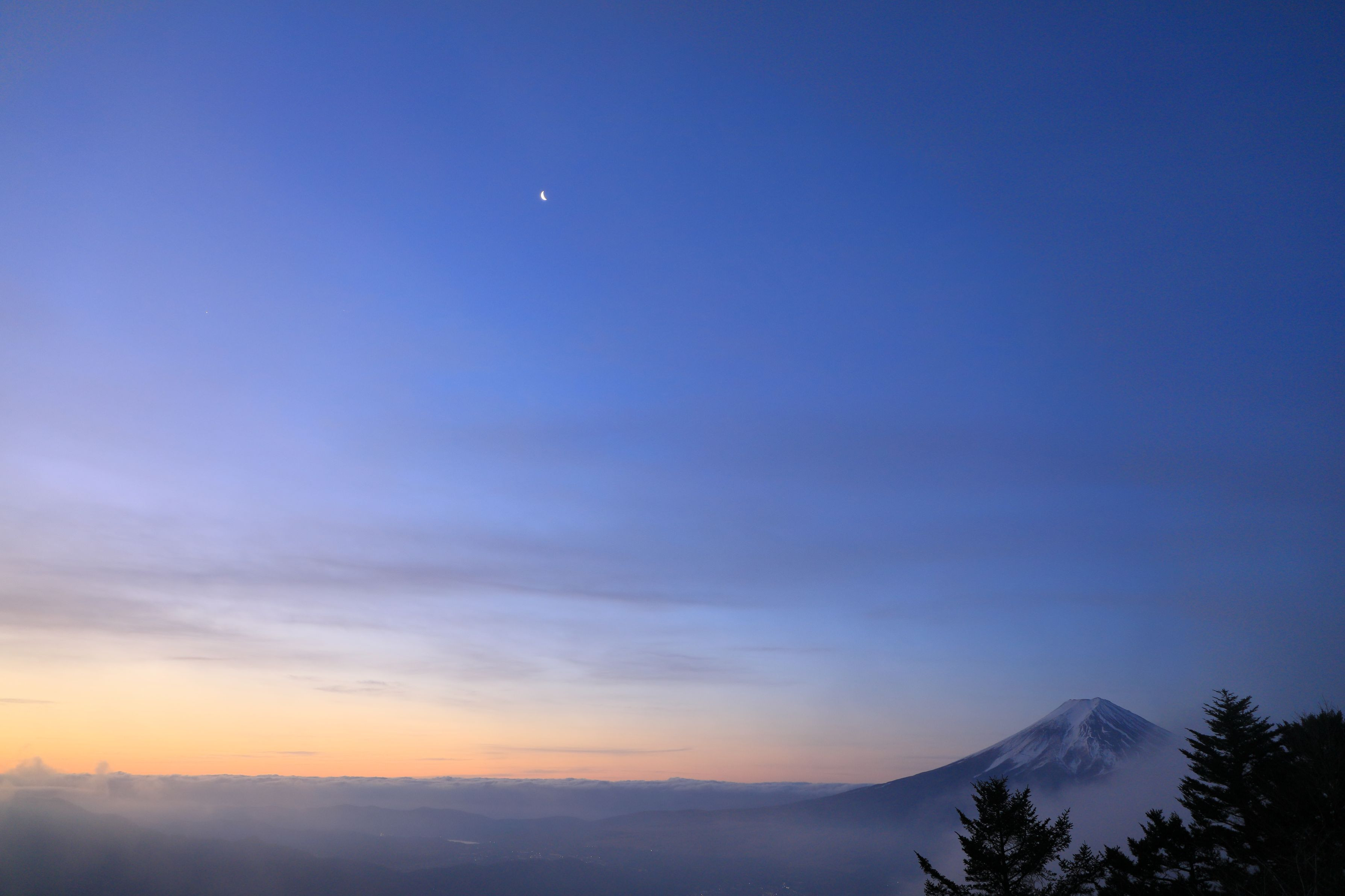 蔵からの”The Answer” 【この構図+日の出前の朝焼け+三日月の位置】 狙って撮れるもんじゃない、たまたま運が良かっただけの話 例えば月齢だけでなく、月の位置・方角が事前にわかるアプリなんてのはあるのだろうか、あるんだろうね、、、 あってとして、狙って撮影にいくのだろうか、、、行くかもね(^^♪