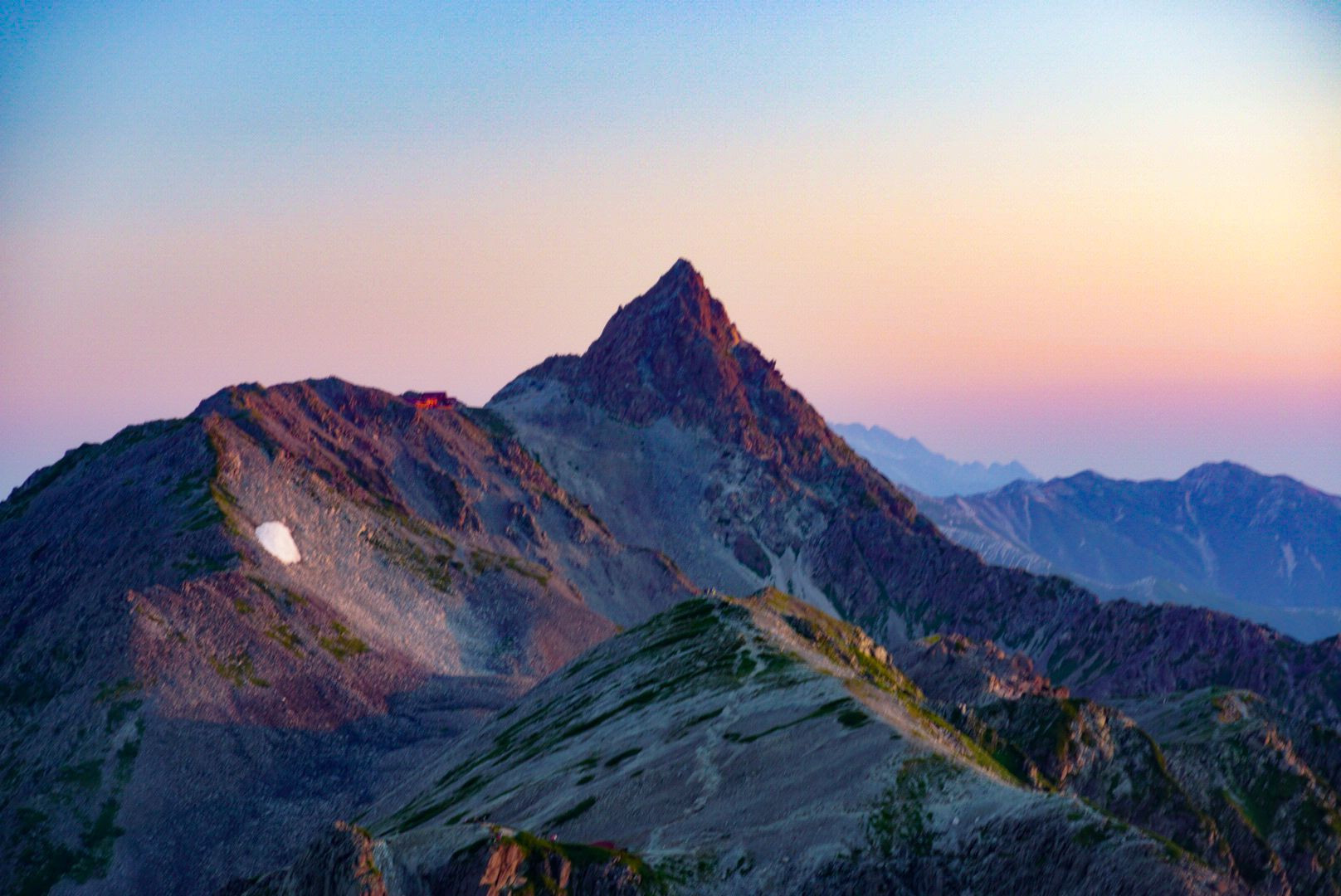 朝日を浴びる大キレット越しの槍ヶ岳
