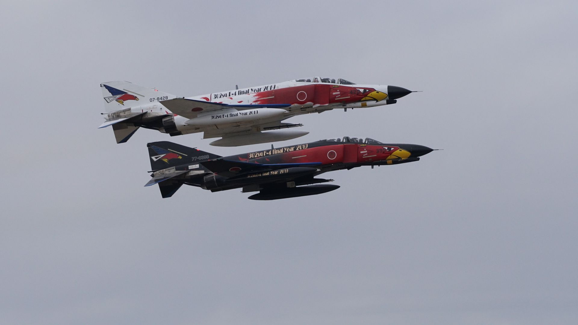 平成三十年度百里基地航空祭にて。 オジロワシこと第302飛行隊のF-4EJ改特別塗装機2機の離陸を収めました。