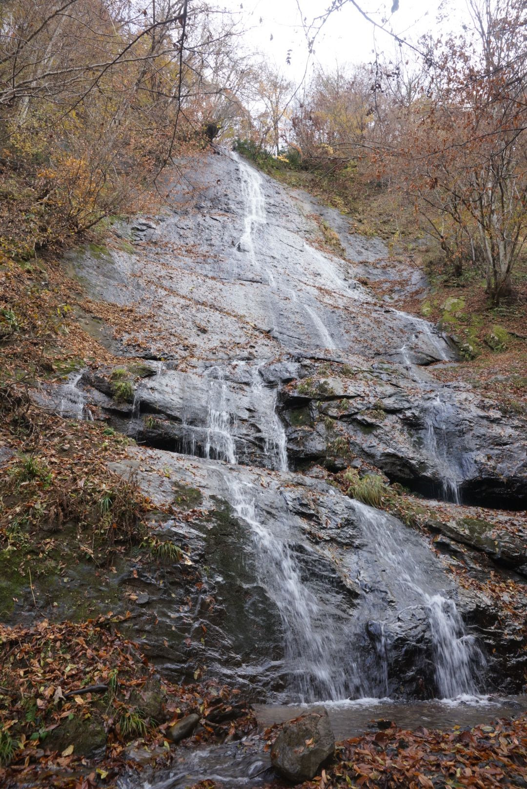 三段に流れる落差78mの滝の下段です この滝は遠方から見ないと全体が見えません