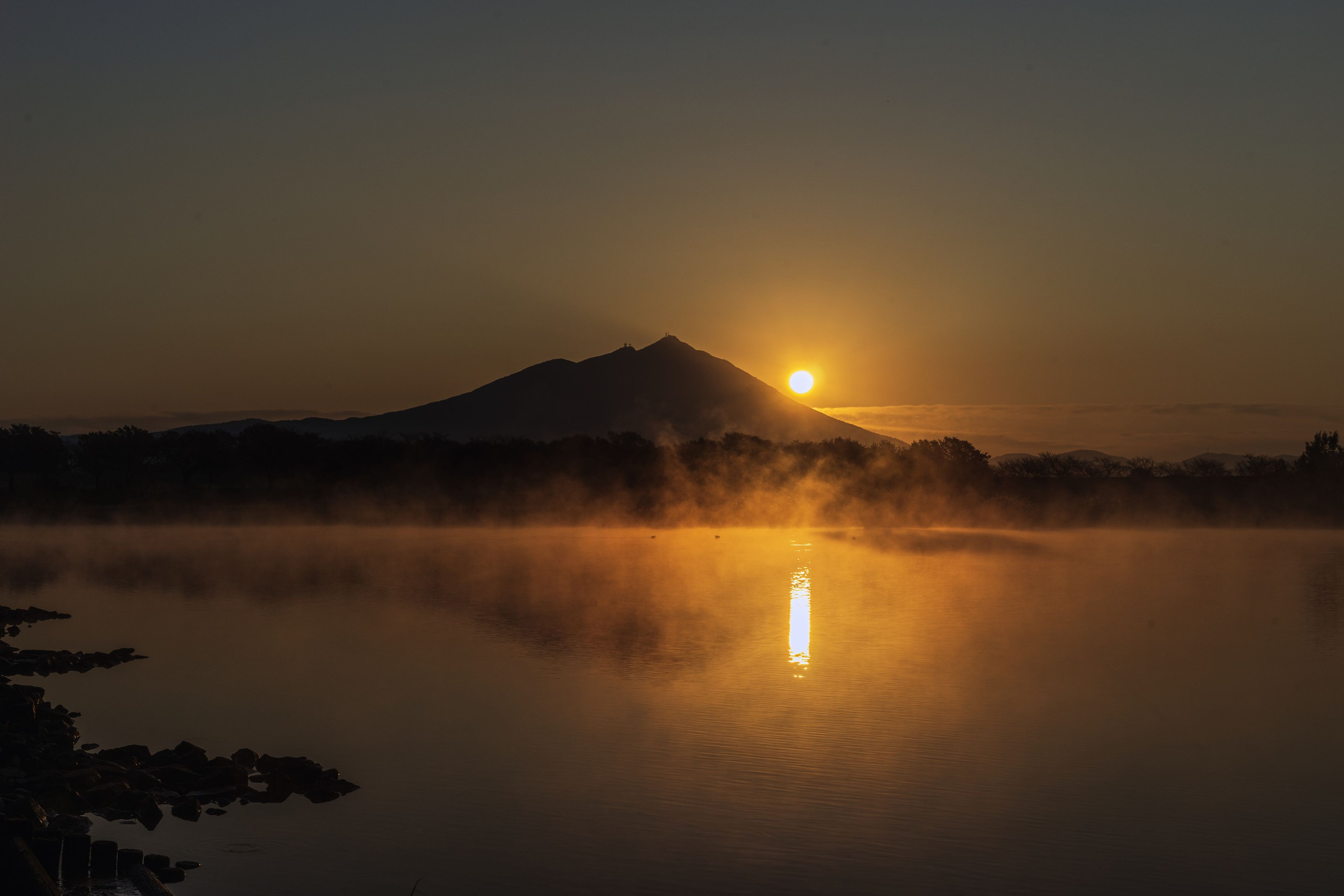 朝焼けを撮りに出掛け、気嵐が出ていた湖面と筑波山を撮影。 まるで炎の様に湧き立つ煙りと太陽に元気を貰いました。