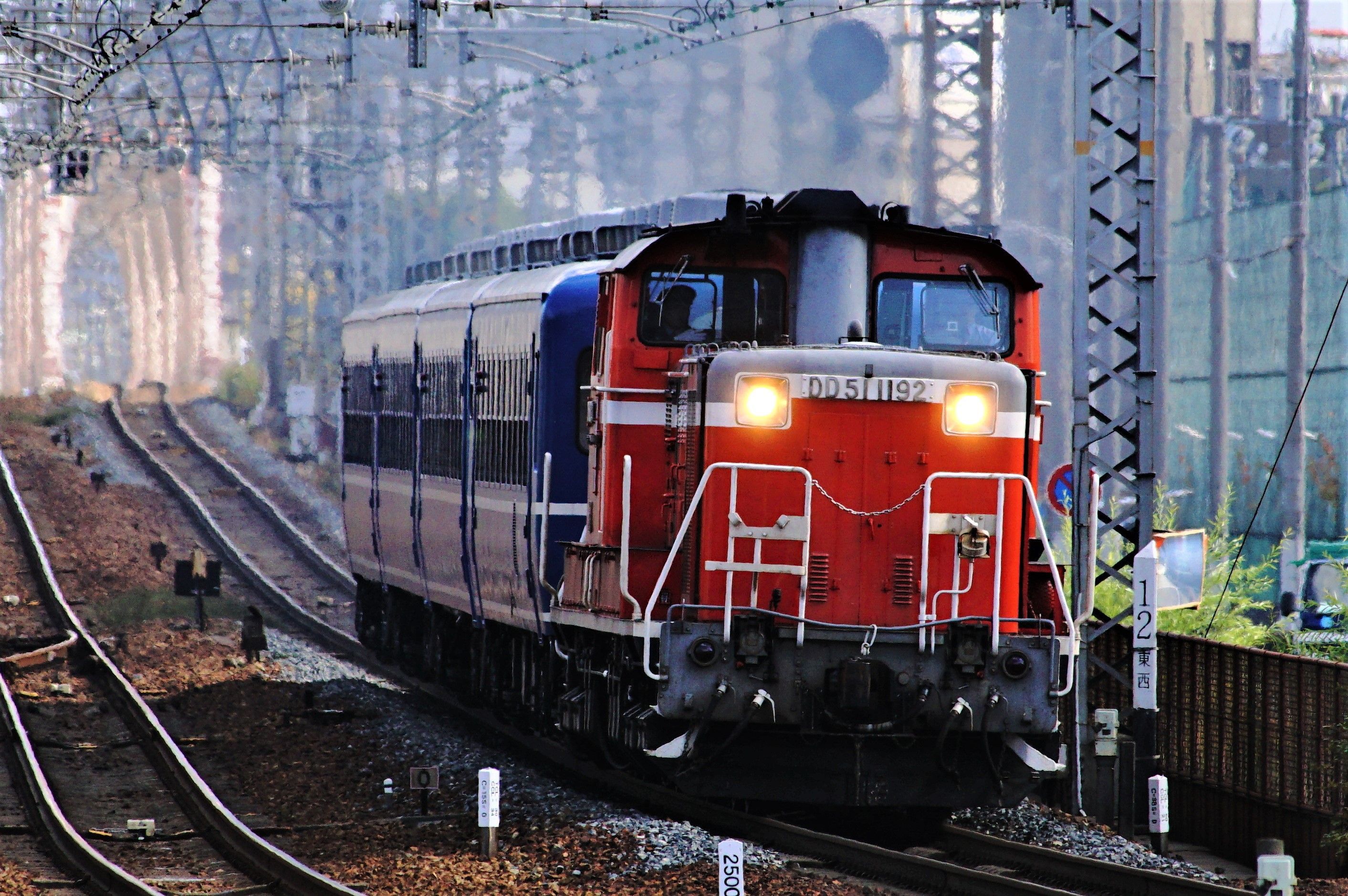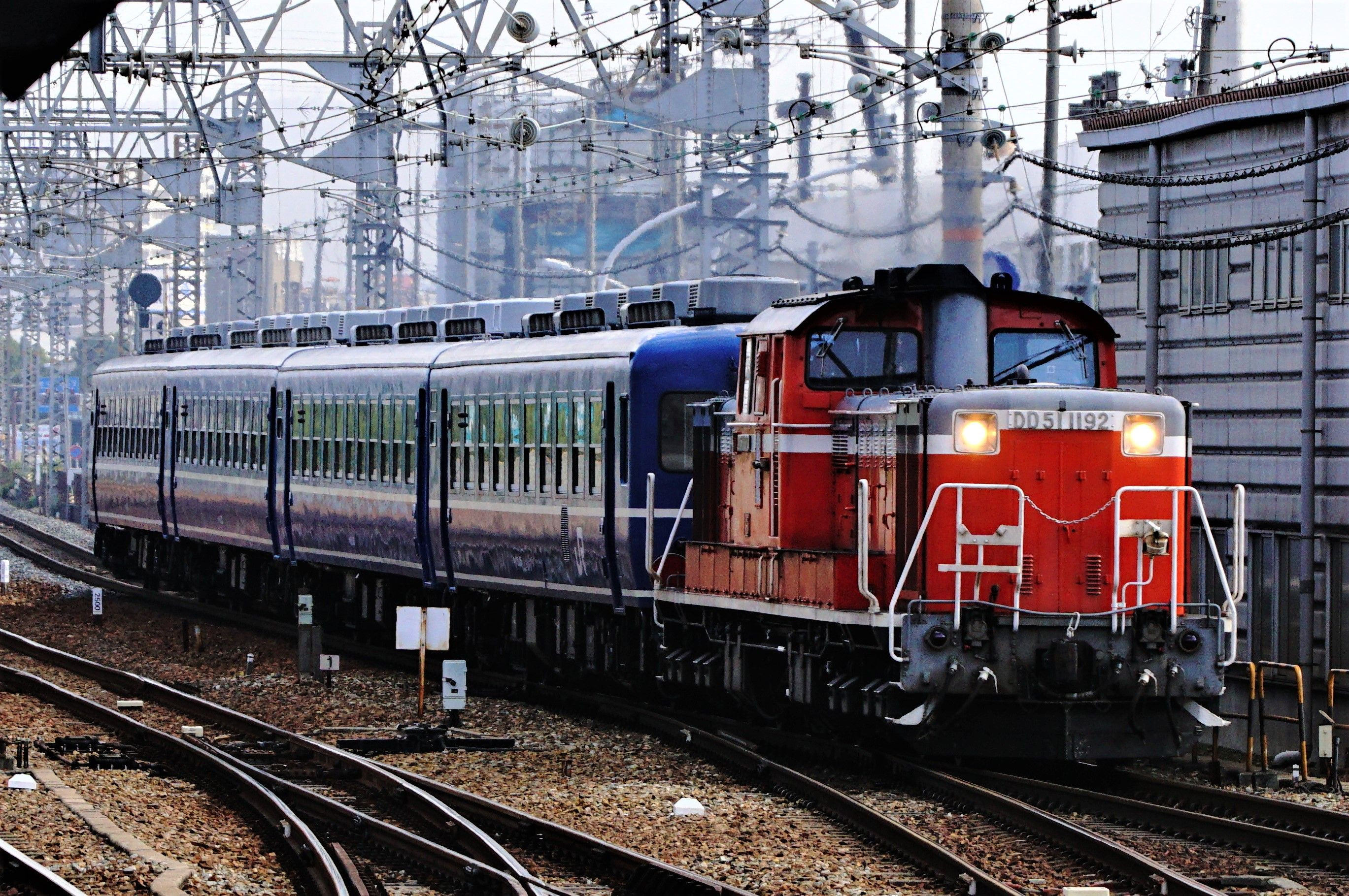 DD51の冬の網干訓練です。 DD511192号機がブルトレの12系4Bを牽引して運転習熟訓練が行われました。