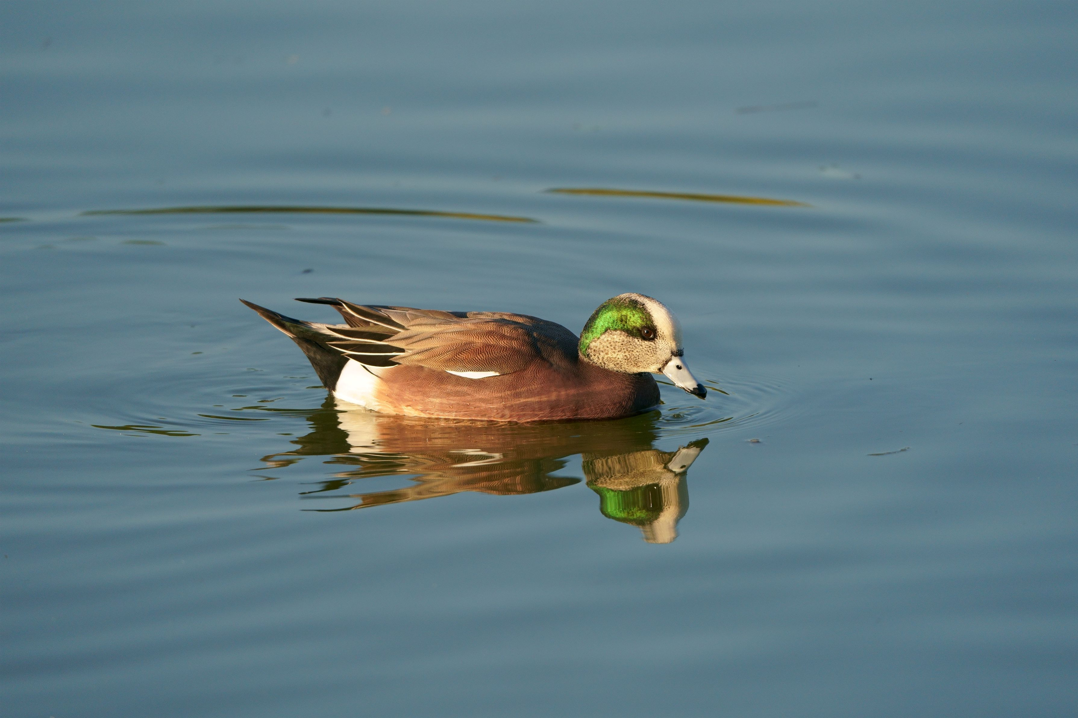 ヒドリガモの群れに交じって アメリカヒドリのオスがいました(^^)/ 交雑種か??微妙です( ;∀;)
