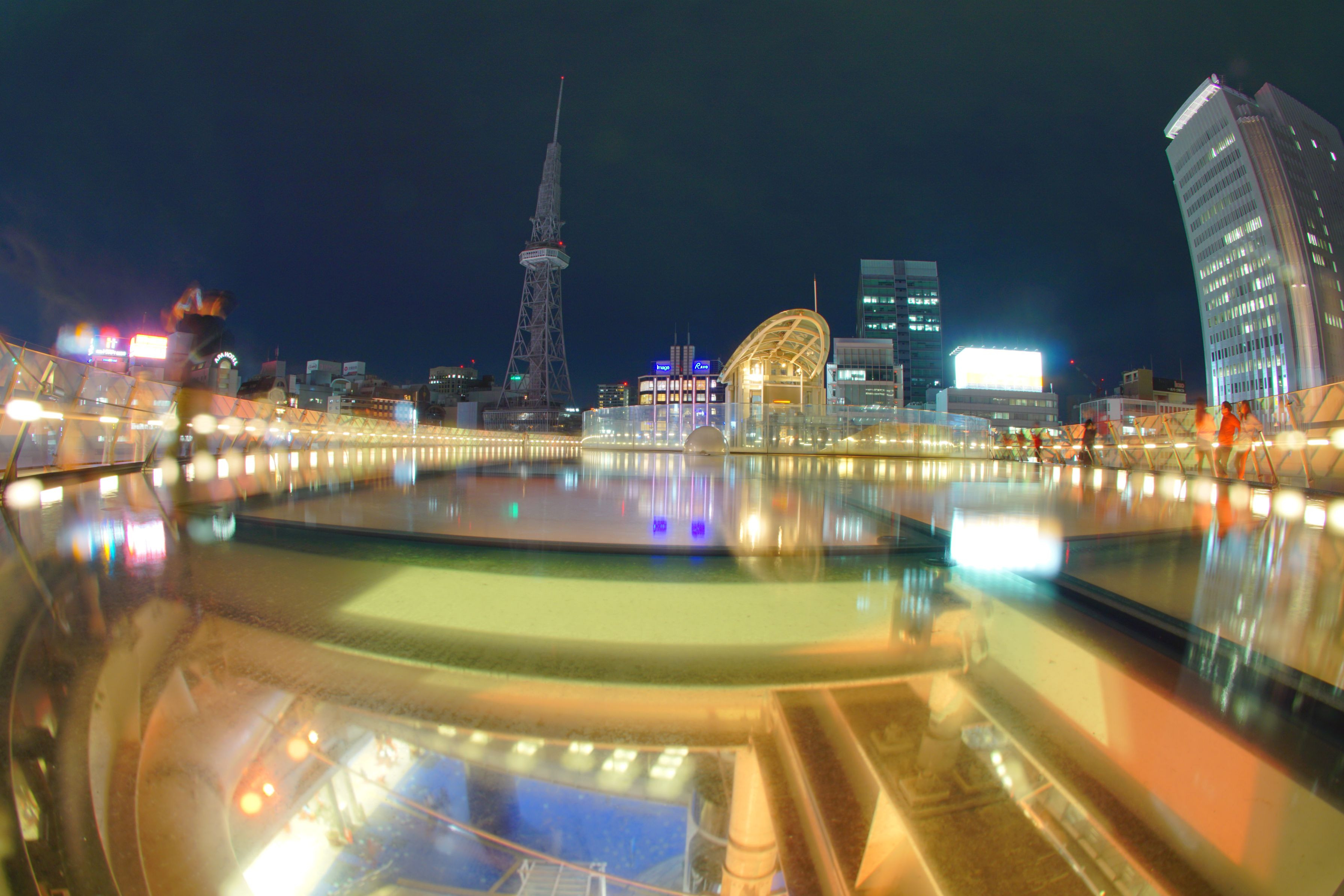 残念ながらライトの消えているテレビ塔をボカさずに、両側の灯りをボカして見ました。
