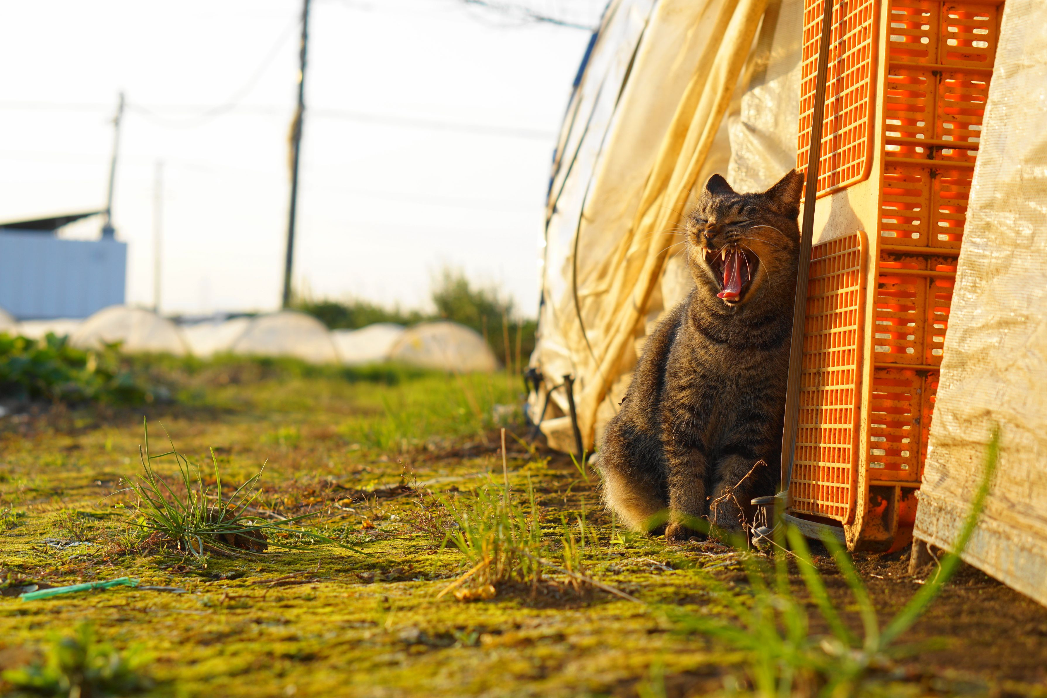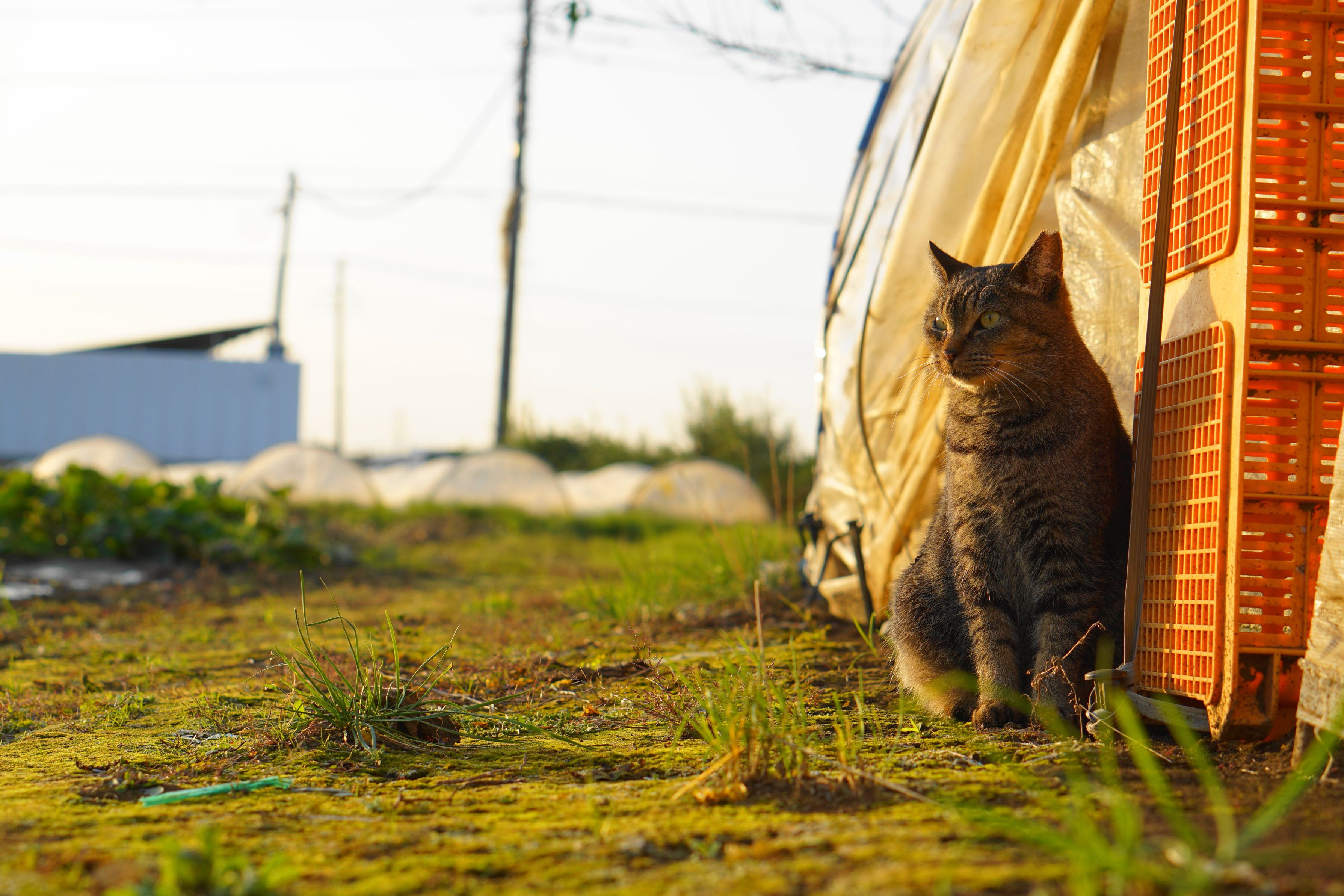 陽が傾くころ 光を浴びた 薄い黄色の菊。 と、常連にゃんこです。