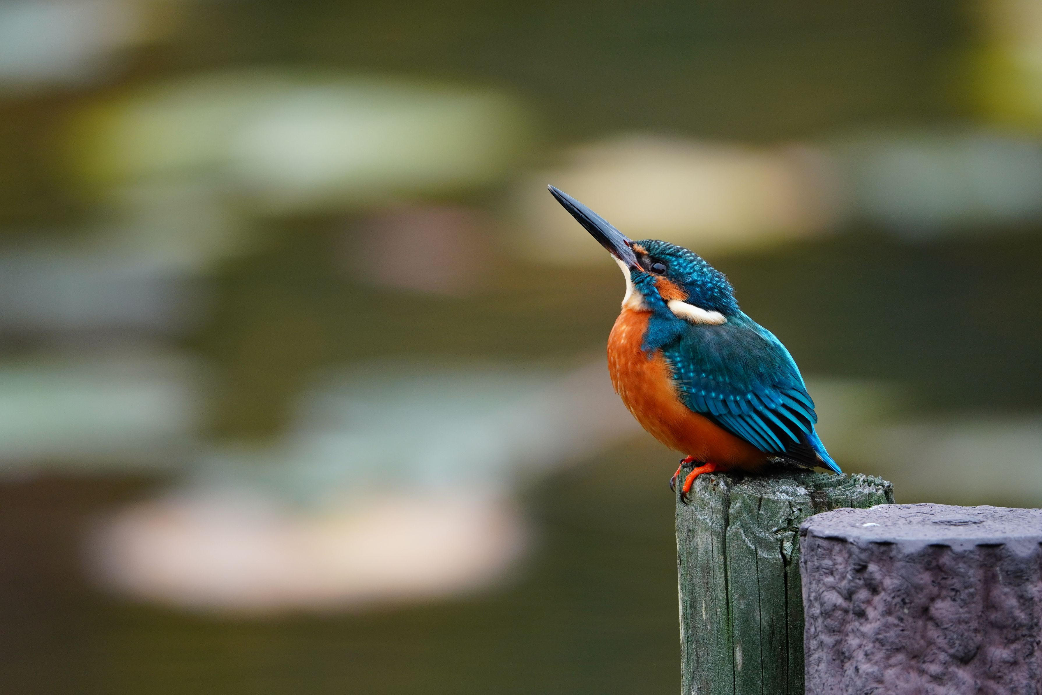 #カワセミ# 水面を見つめていたカワセミが、急に上空を見ていました。 1分以上?は上を見ていたのではないでしょうか。 僕も上を見ましたが、特に猛禽類っぽいものは見えなかったと思います。 カワセミには何か見えてたのですかね。