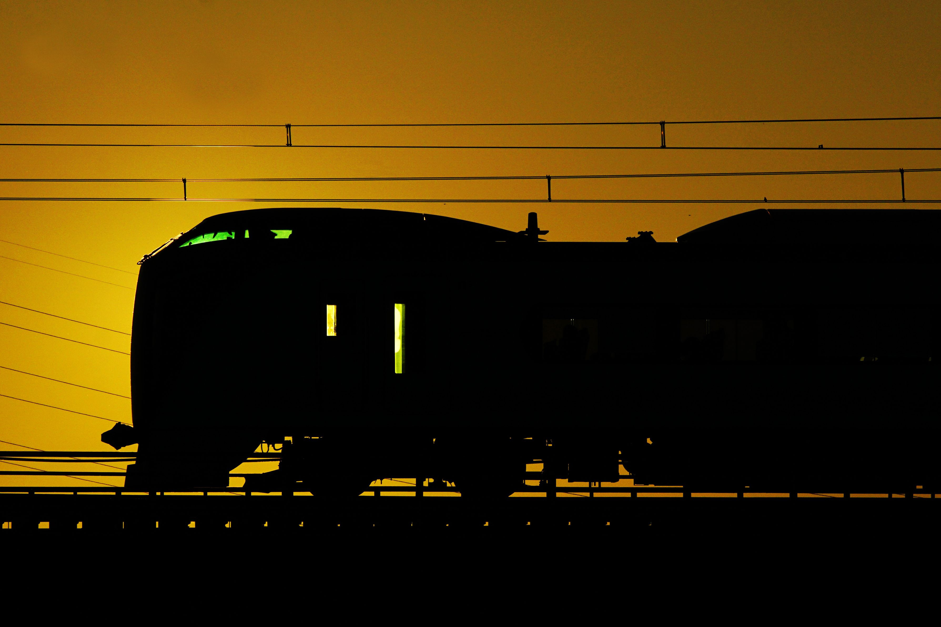 列車と太陽が綺麗にかぶって影絵のようなりました。