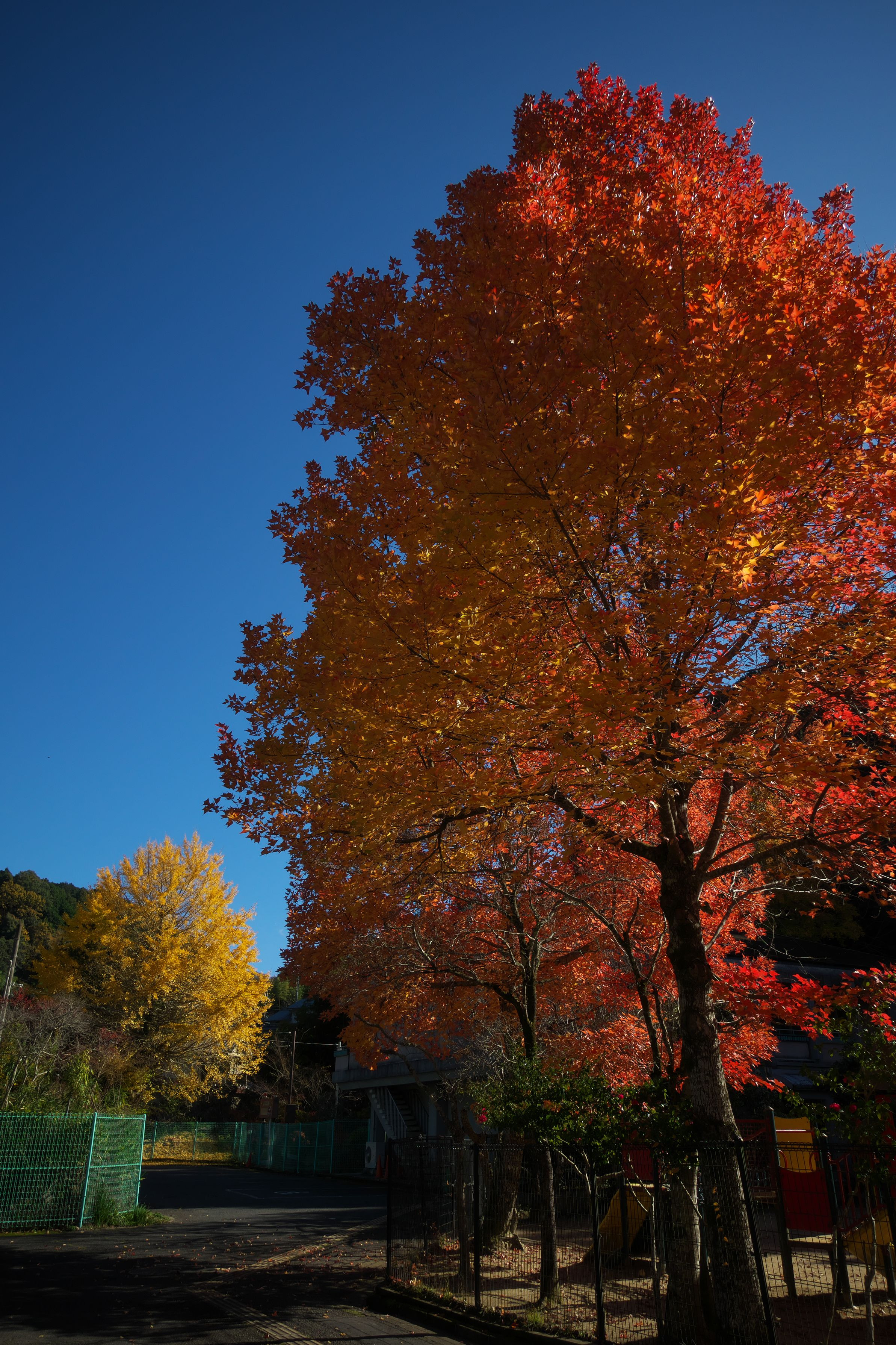 青、赤、黄、そしてフェンスの緑が集まりました。