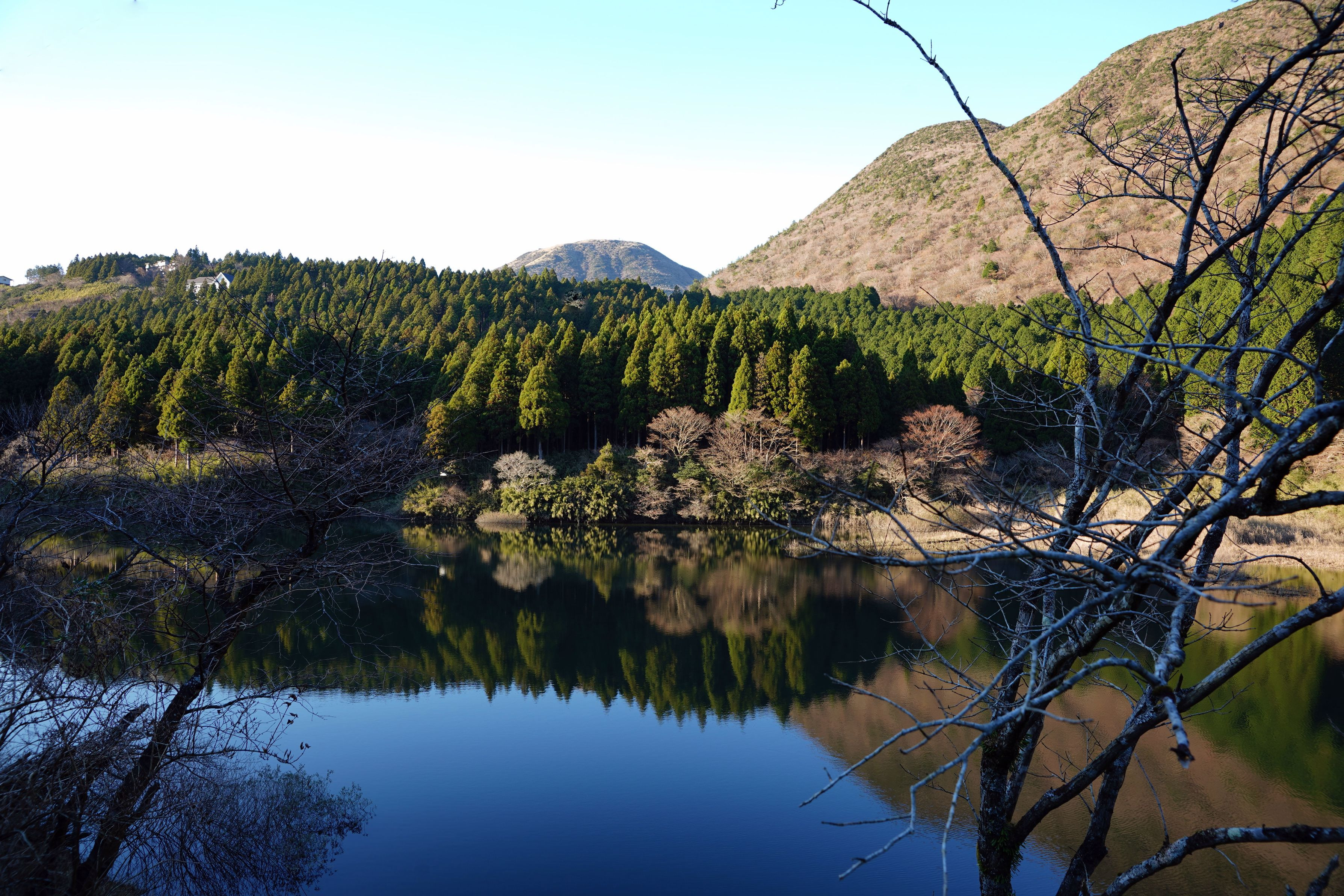 湯元から芦ノ湖へ向かうときに綺麗な場所を見つけました。 私が驚かせたのか、サギが飛び立ってしまいました。
