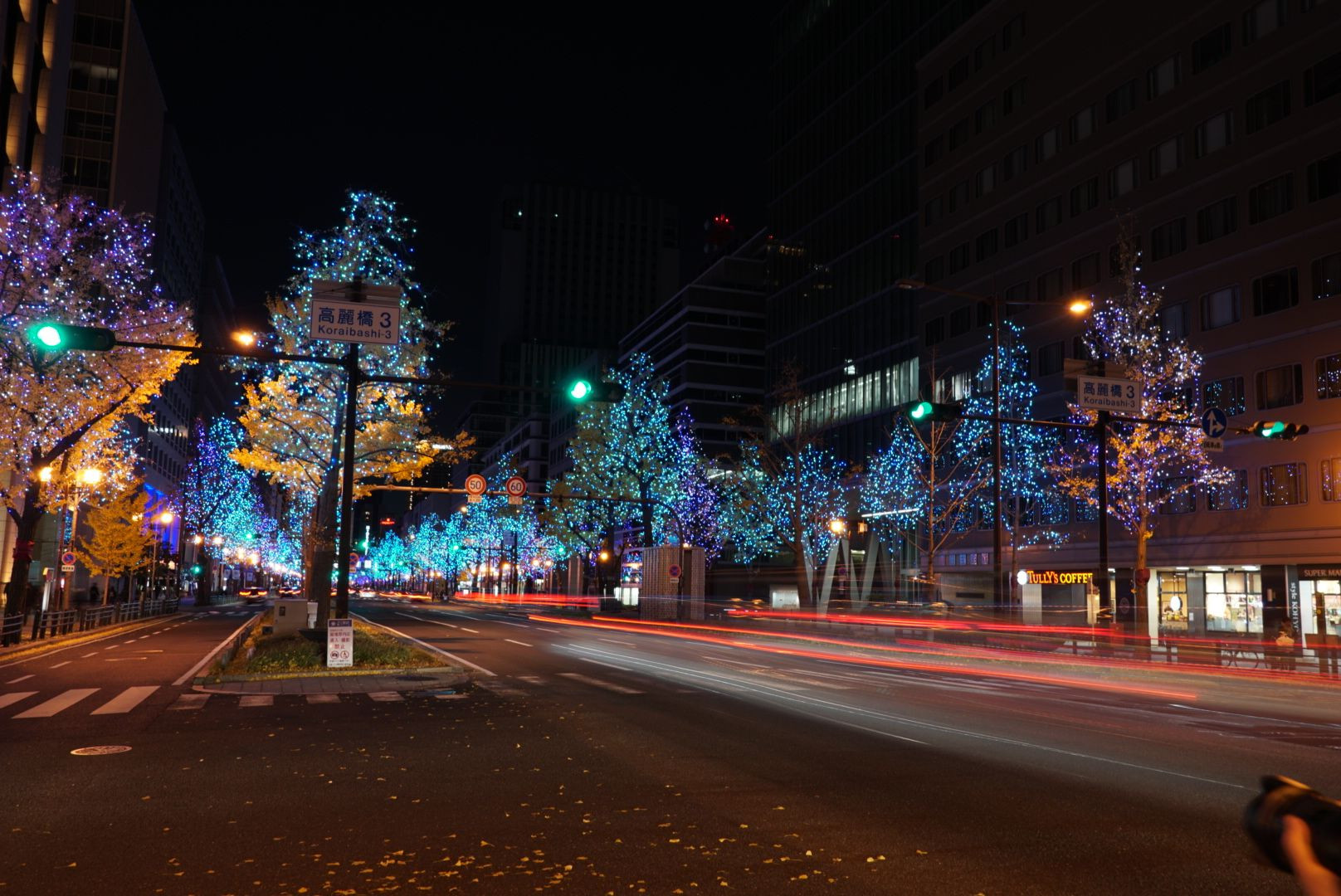 本町辺りです。心斎橋、難波へと南に向かうにつれて、イルミネーション色が変わります