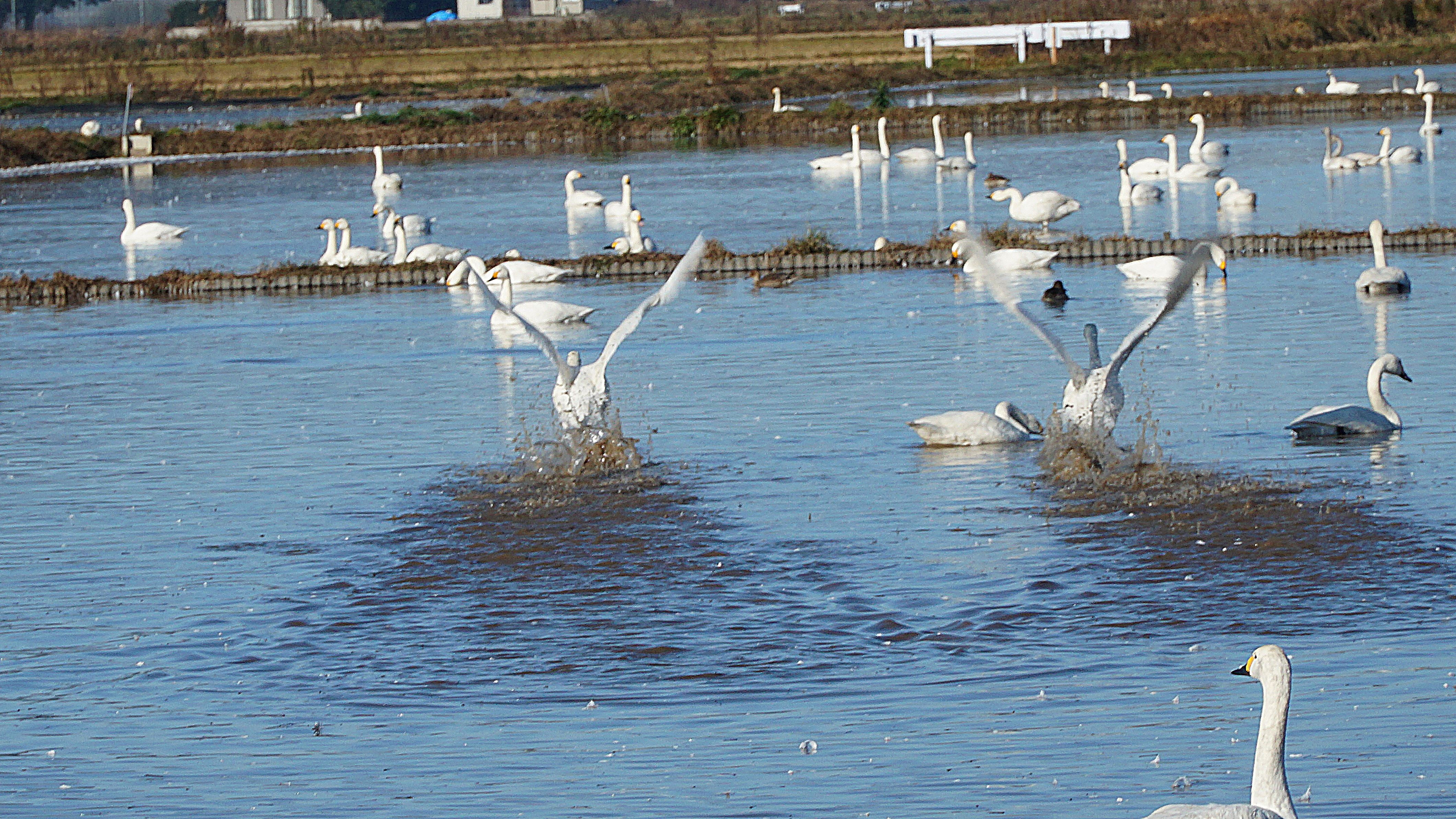 コハクチョウと大山