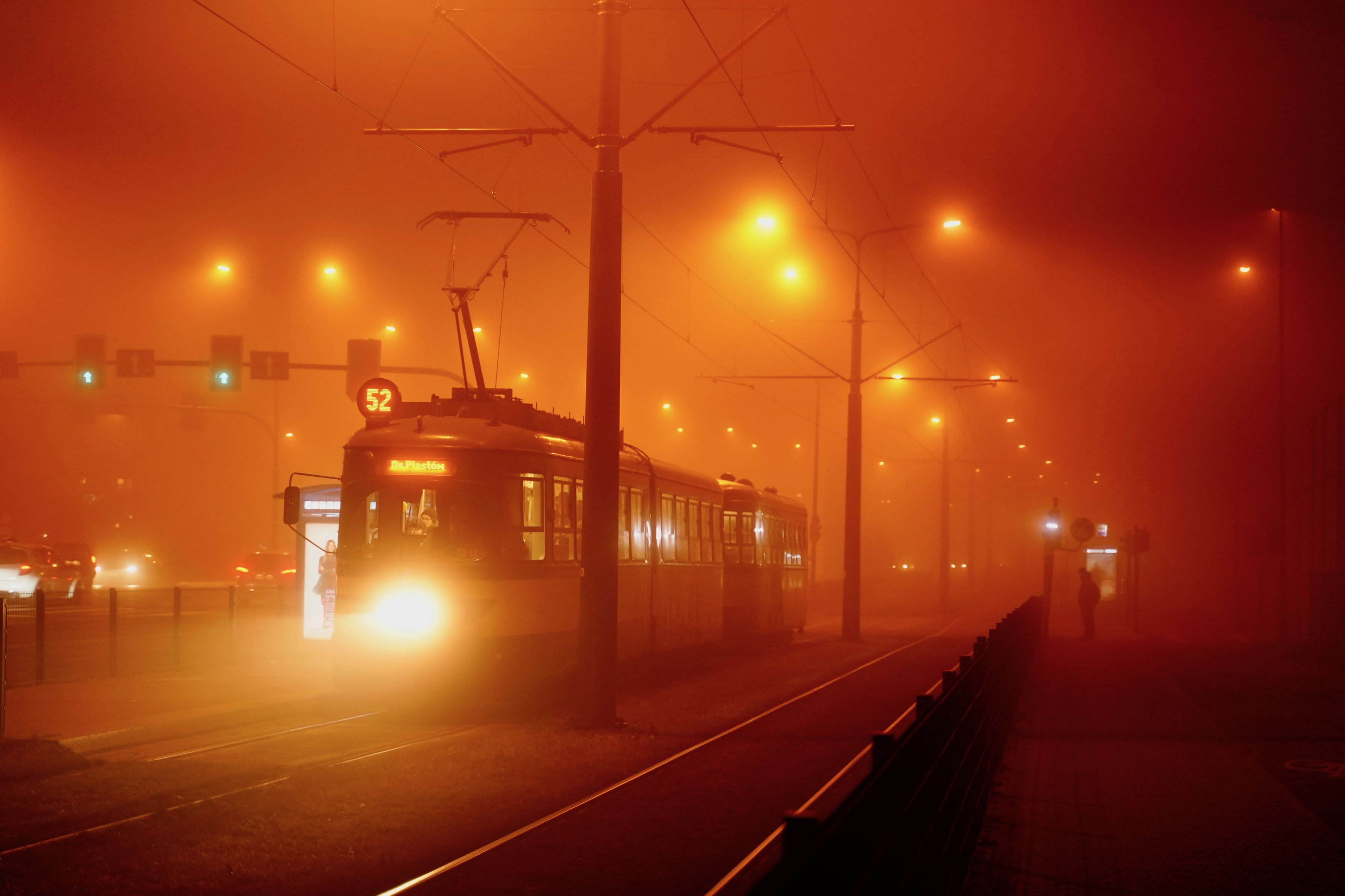 朝霧を走るトラム