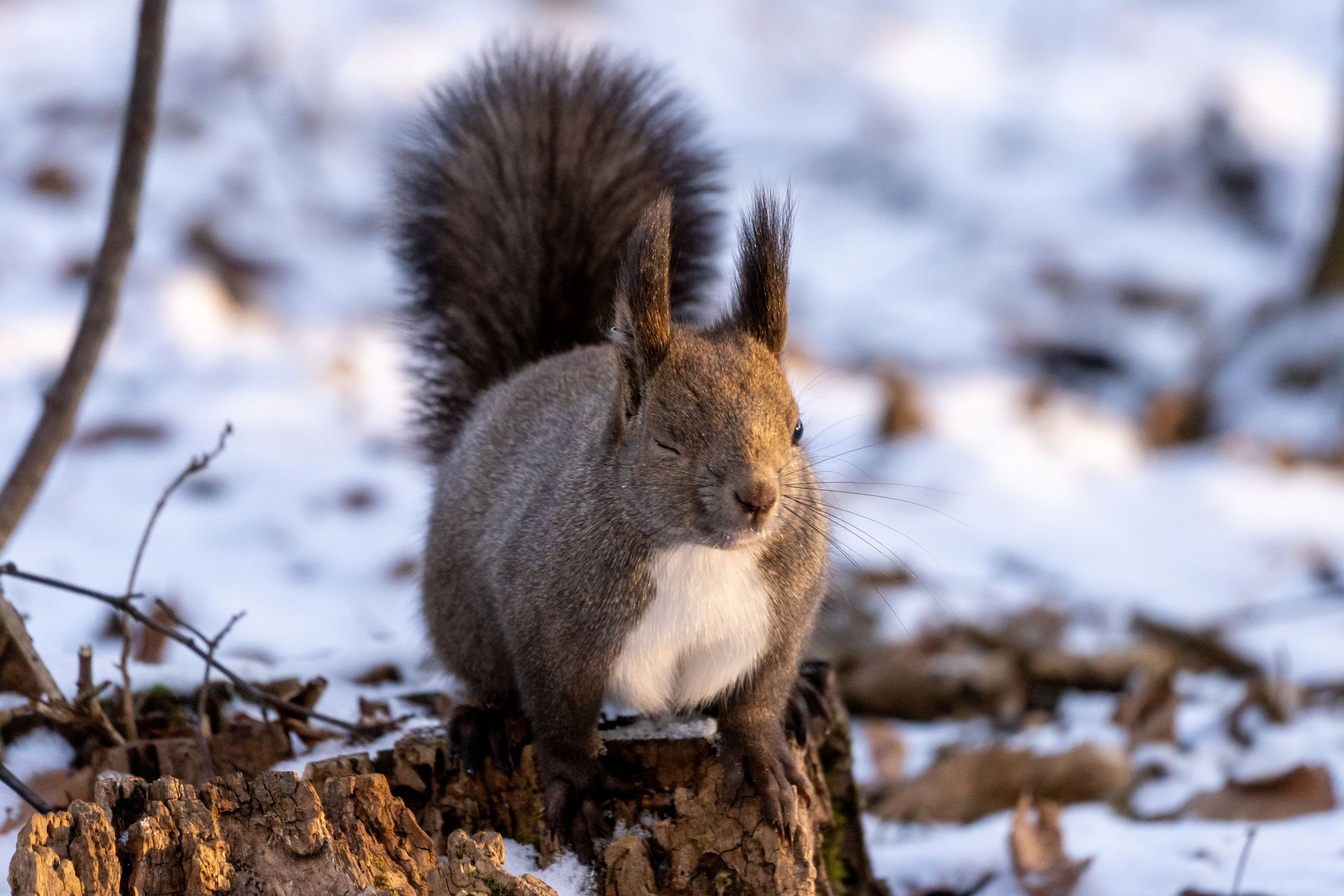 エサをねだるリス