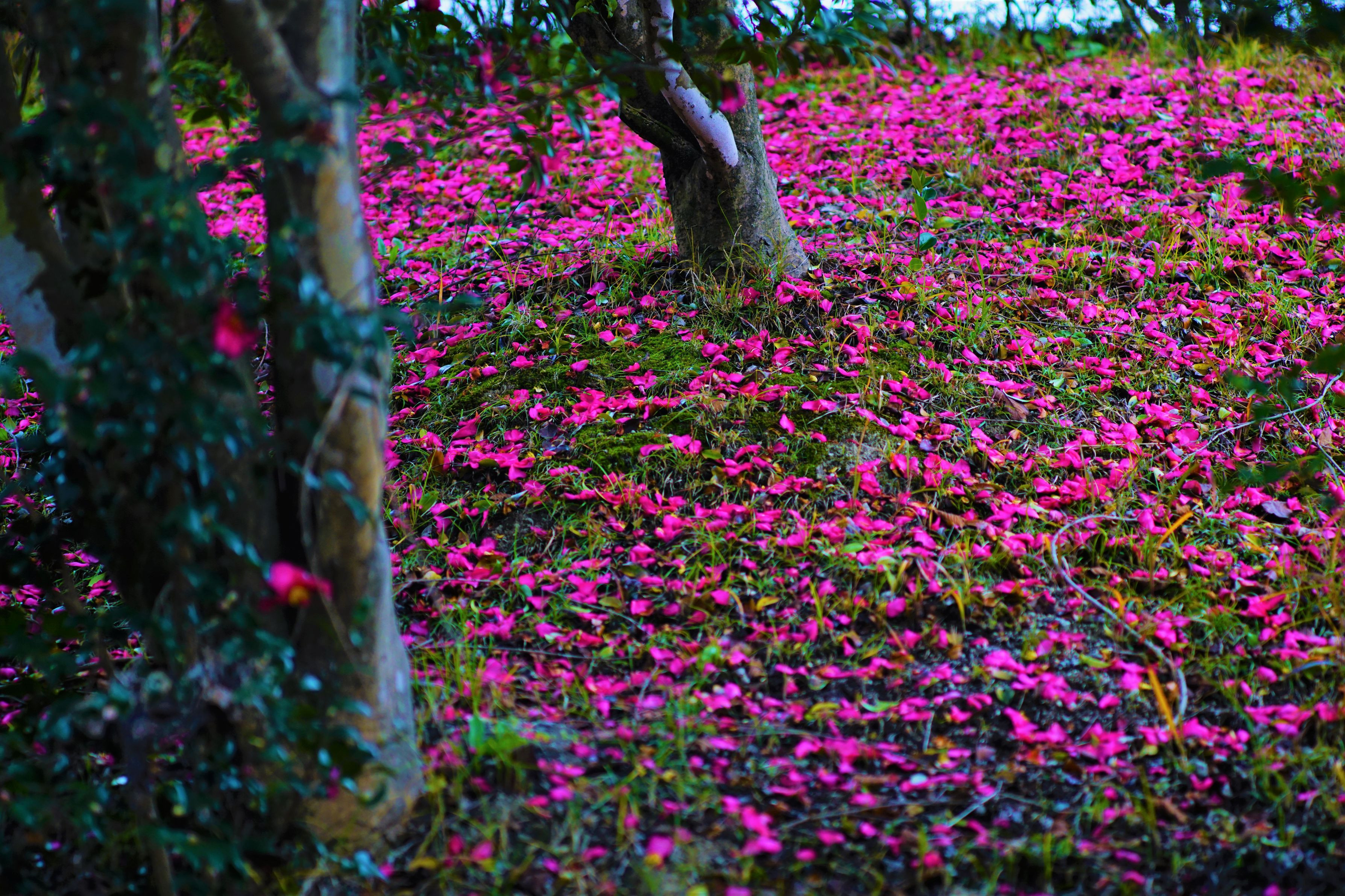 満開の山茶花を思い描いて訪れた公園… そこには、紅い花弁が地面を一面に覆っていました。 レンズ:「Leica Leitz CANADA ELMARIT-R 1:2.8/135」