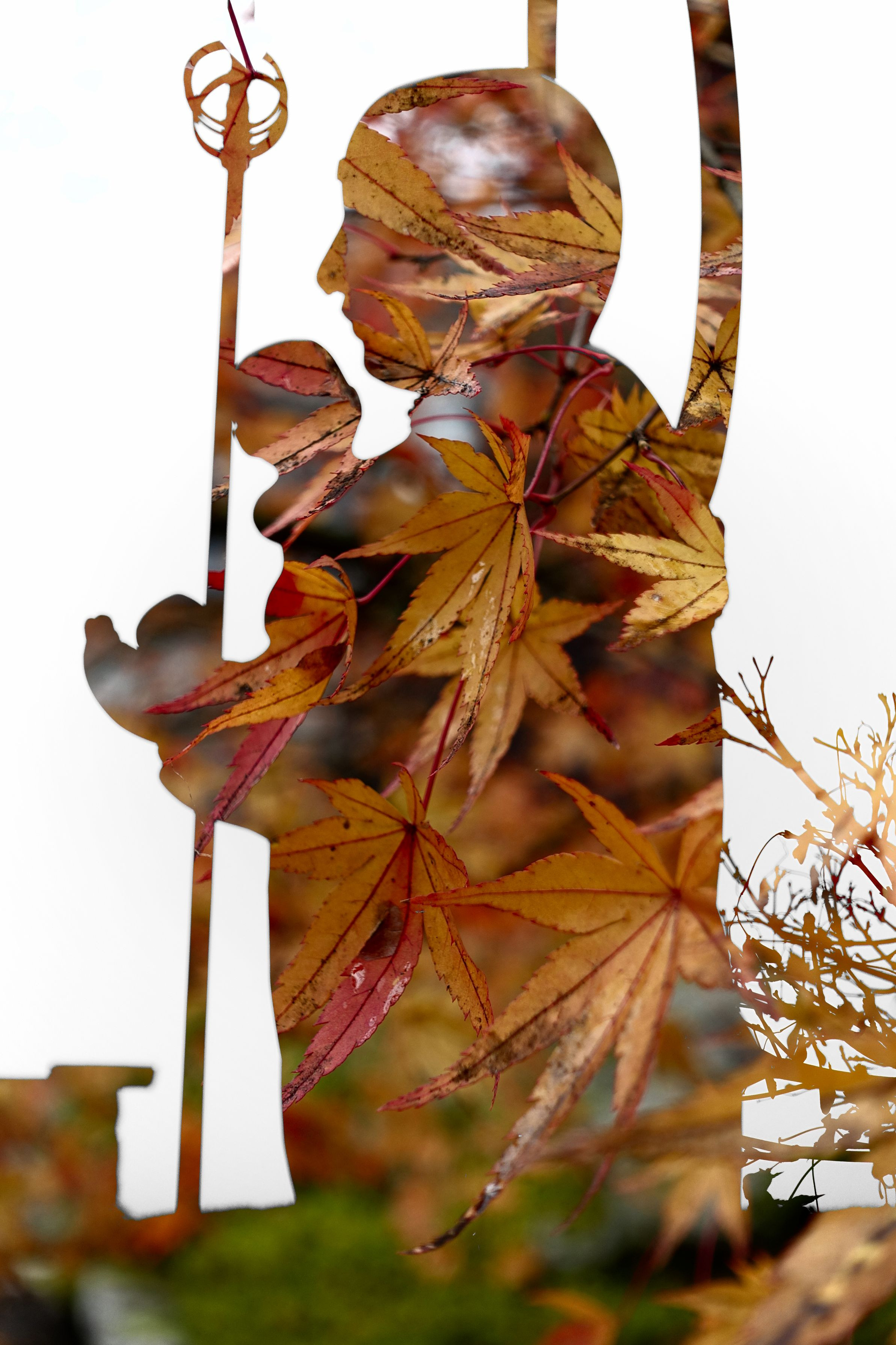 子宝地蔵に紅葉を多重合成しました。
