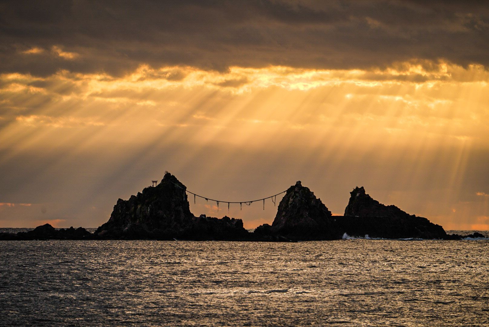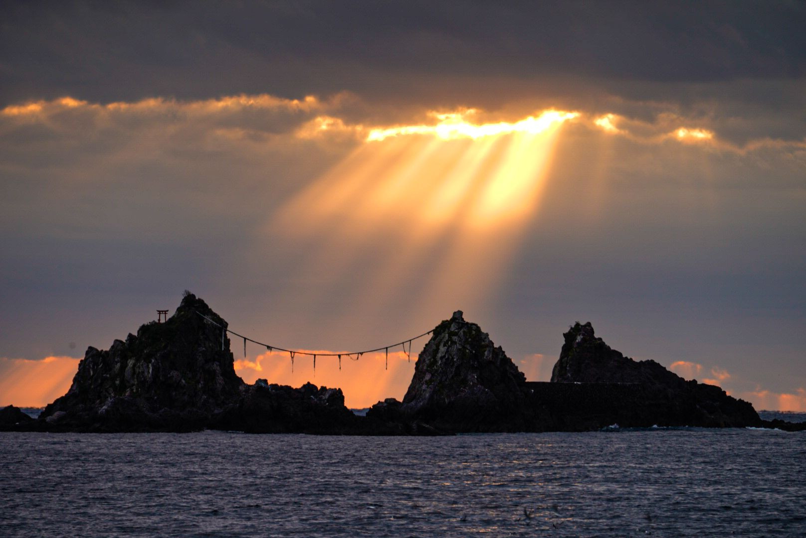 鳥居に沈む太陽
