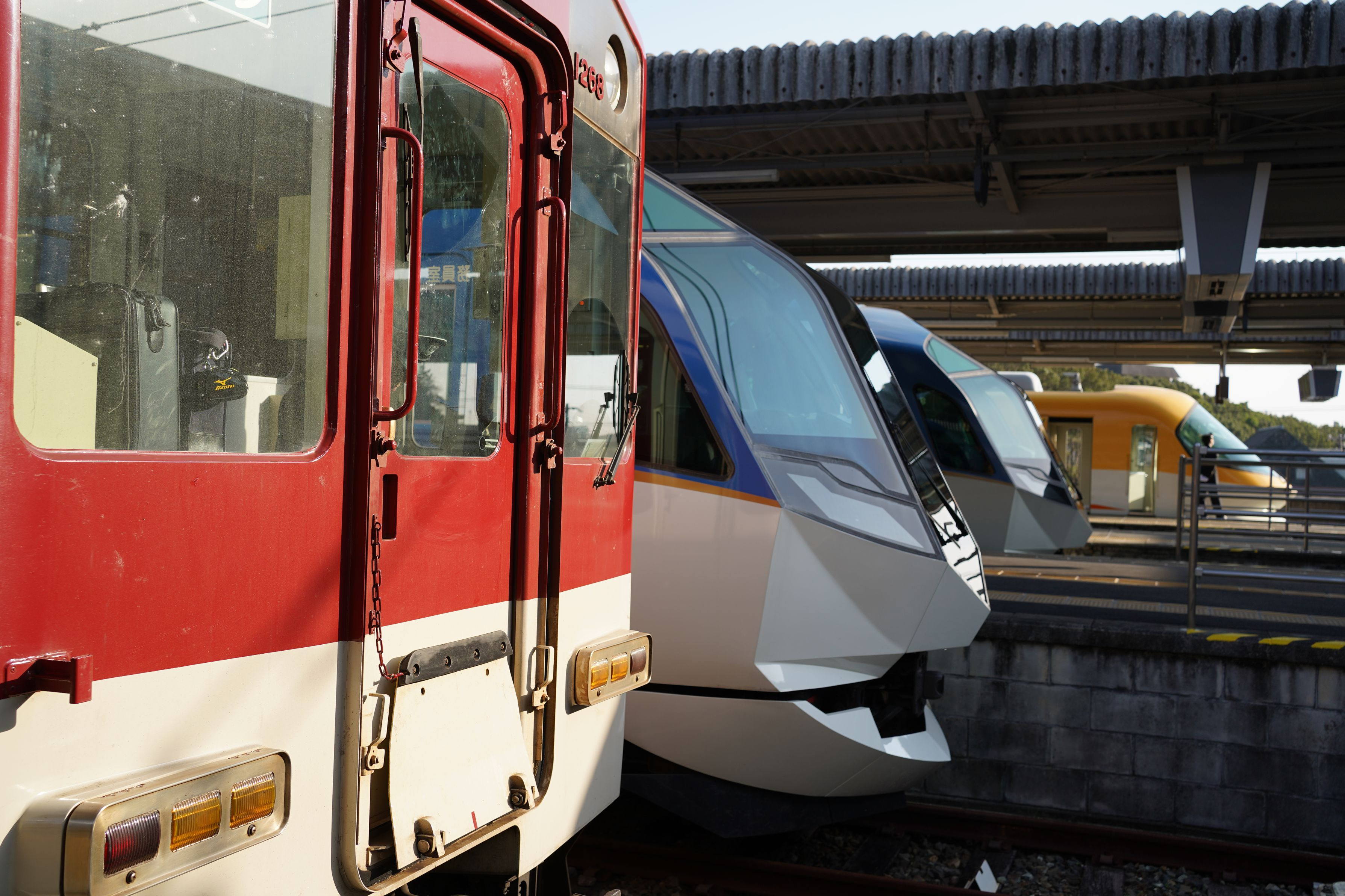6才の子供にカメラを持たせてシャッターを切らせてみました。 賢島に到着した電車の顔がアイドルみたいな並びで面白い写真に。