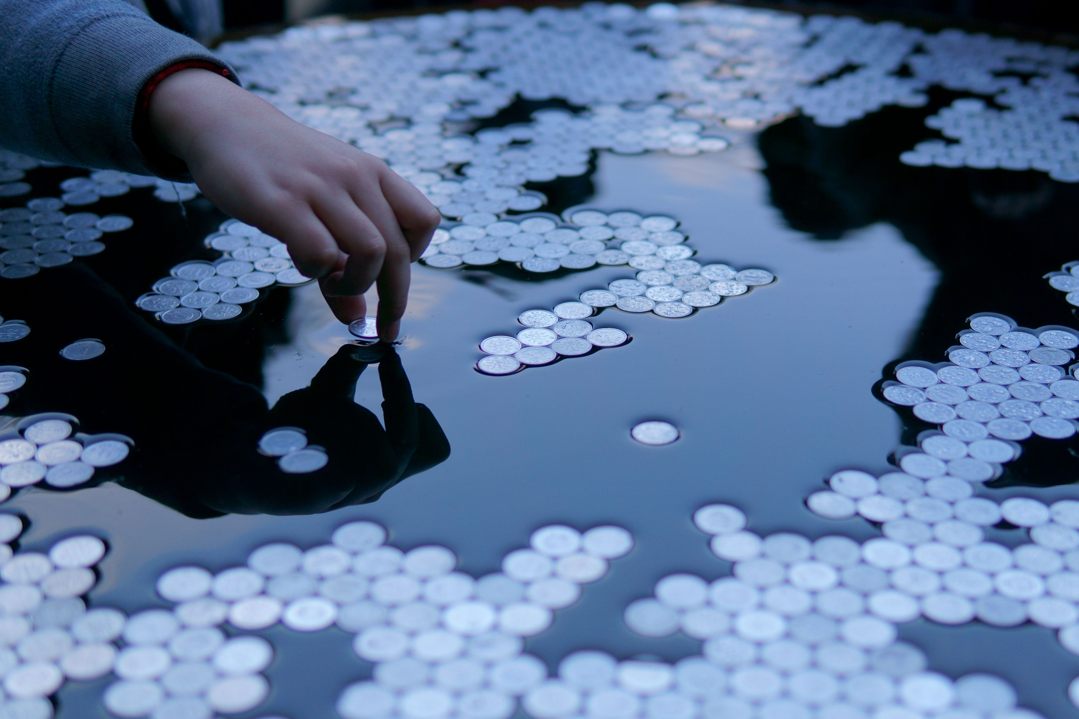 初詣、一円玉は浮かぶかな? 金刀比羅宮の瓶