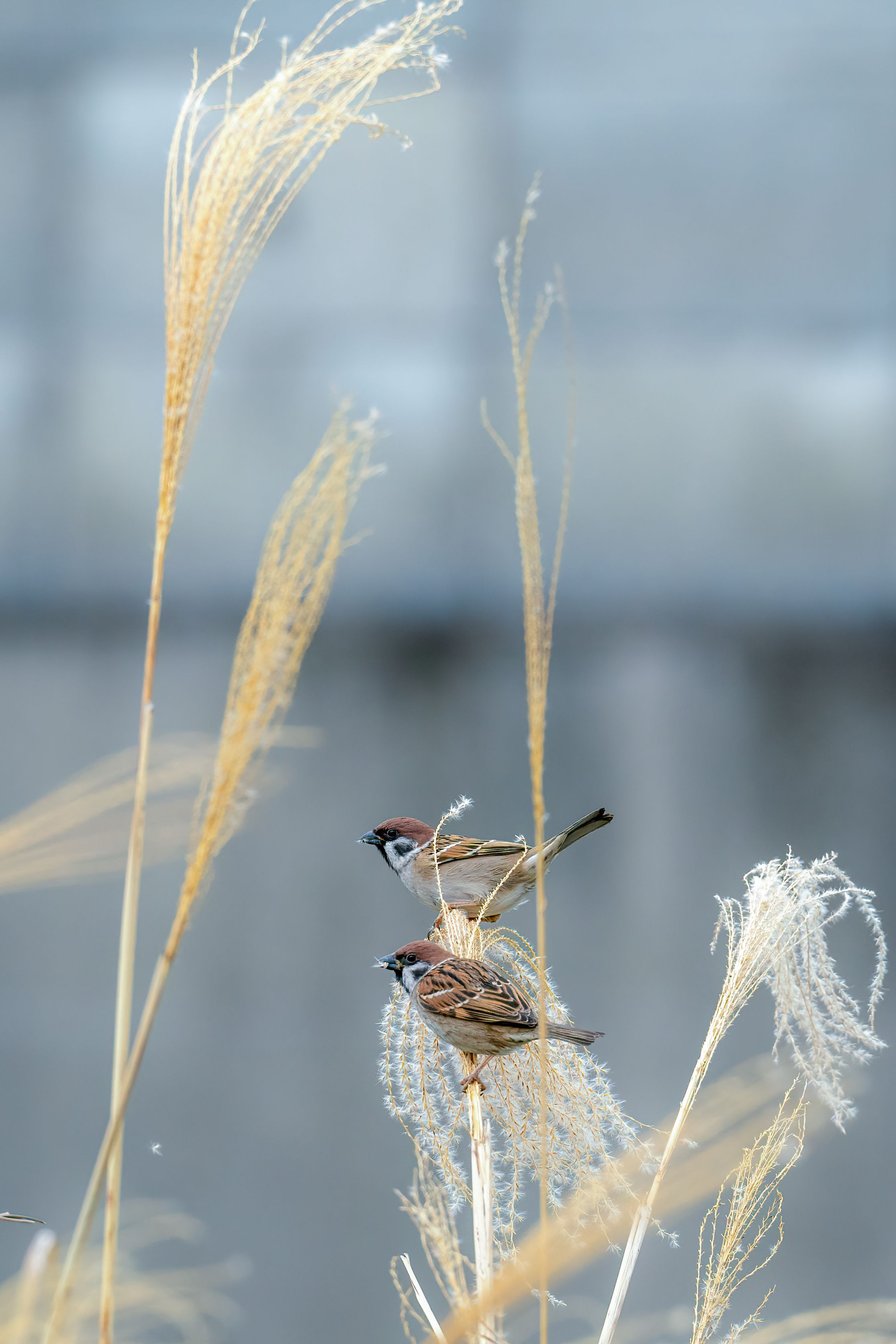 雀はススキの穂が好物なようですね。