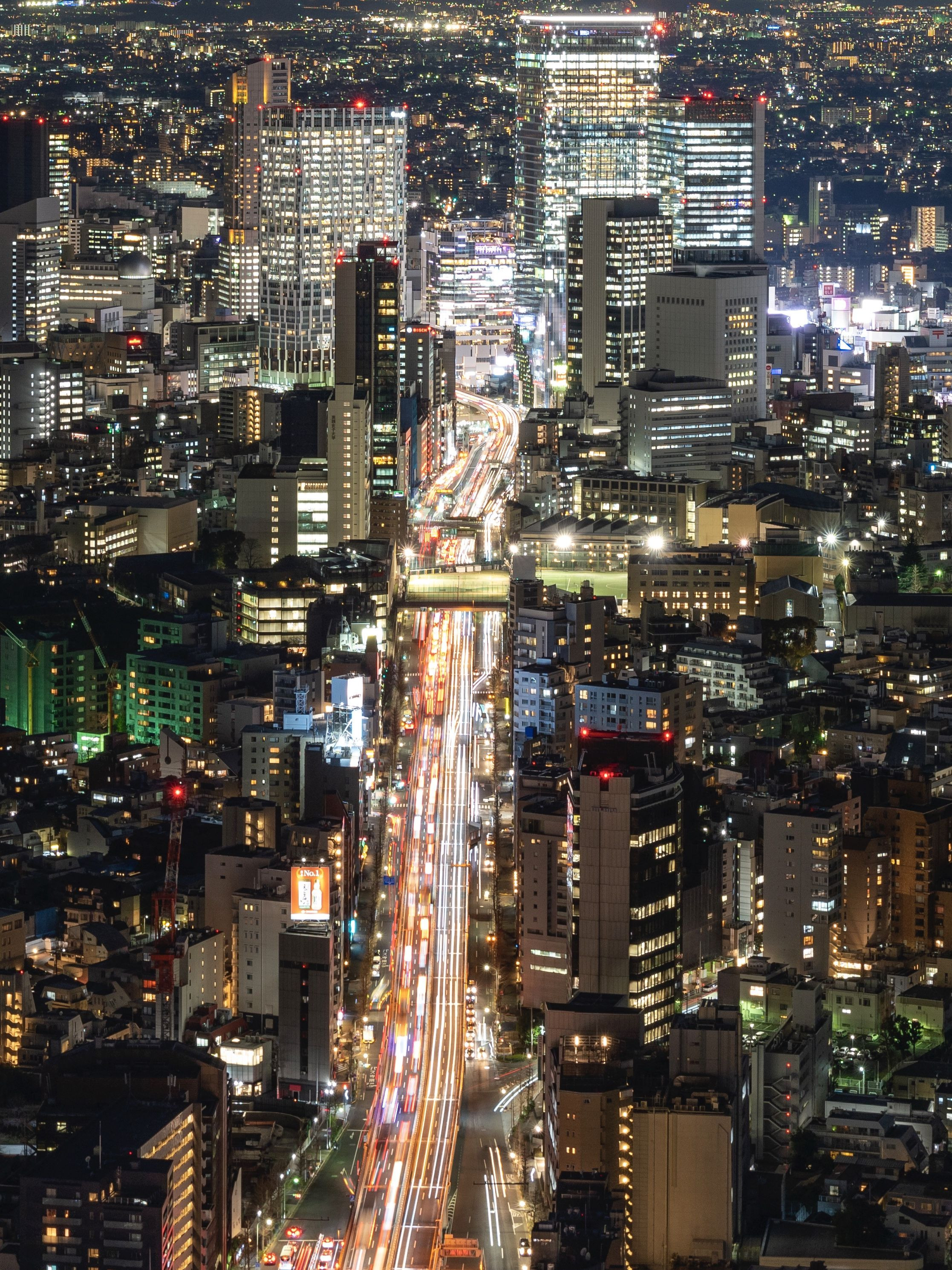 オリンピックスタジアムと新宿上空