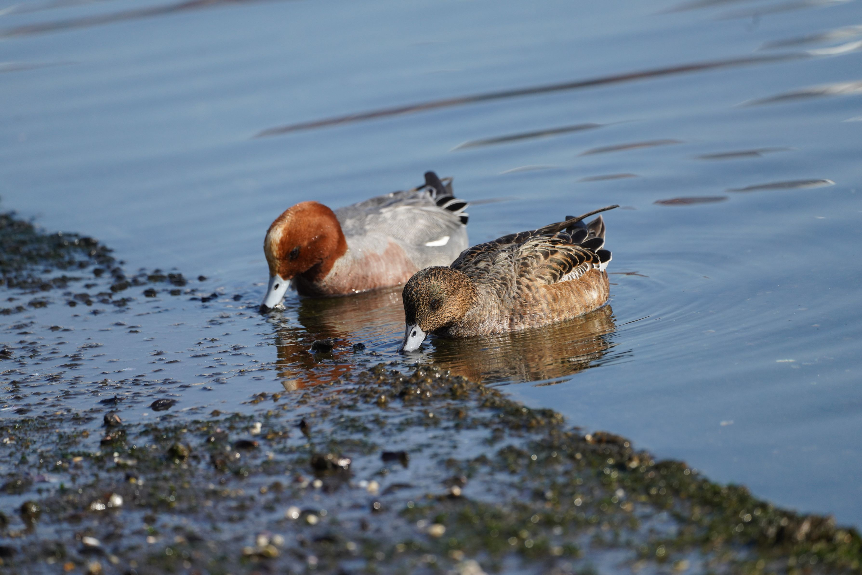 ヒドリガモのペアが仲良く食事していました。