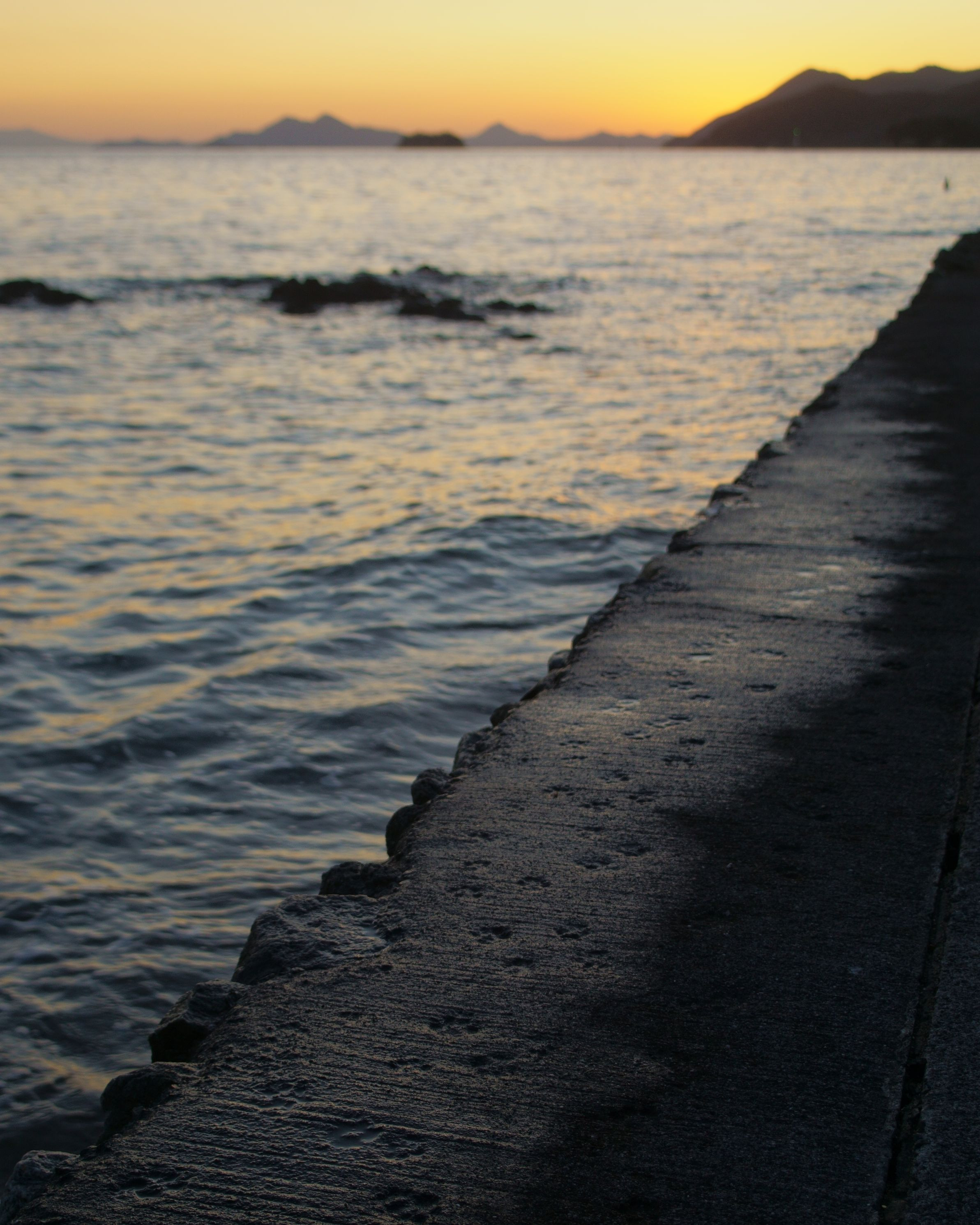 ねこが歩いて行ったのでしょうか。 堤防に多くの肉球が残されていました。