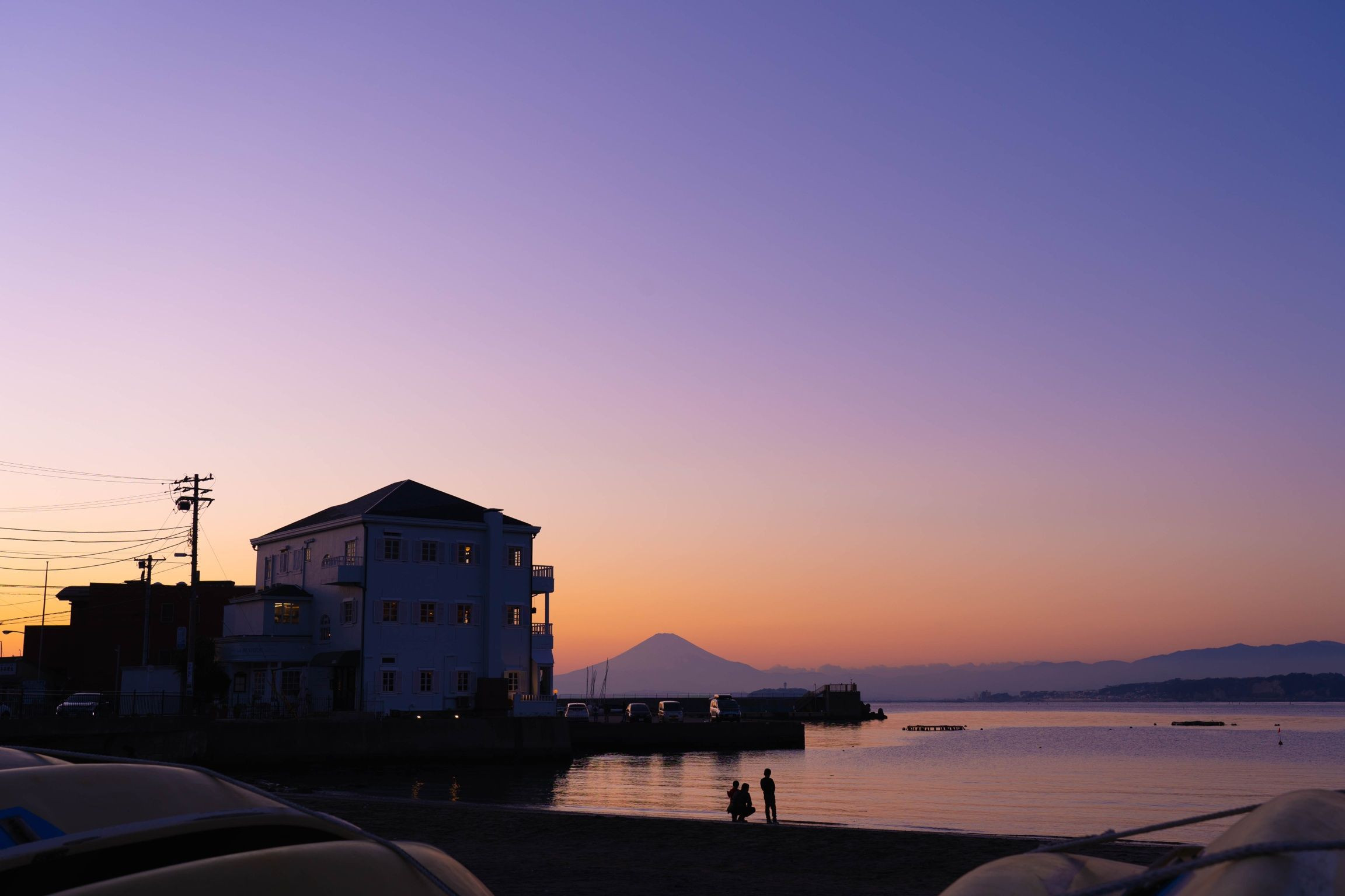 美しいマジックアワーの時間帯、親子も富士山を見に来ていました。
