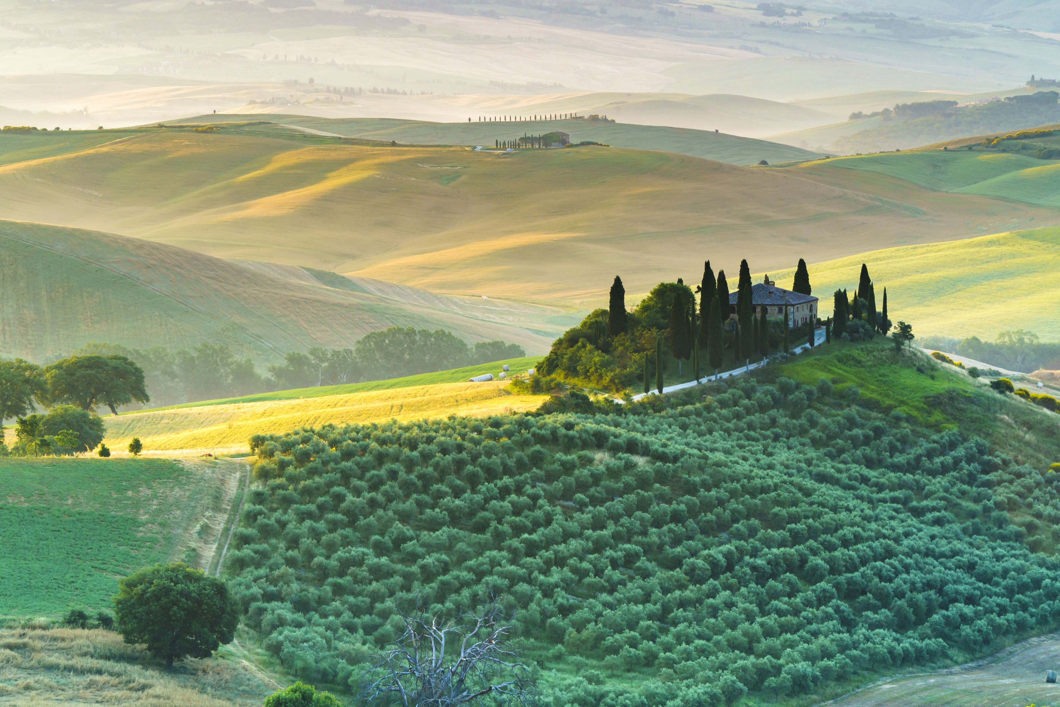 6月のオルチャ渓谷です。わずかに朝霧が発生していました。