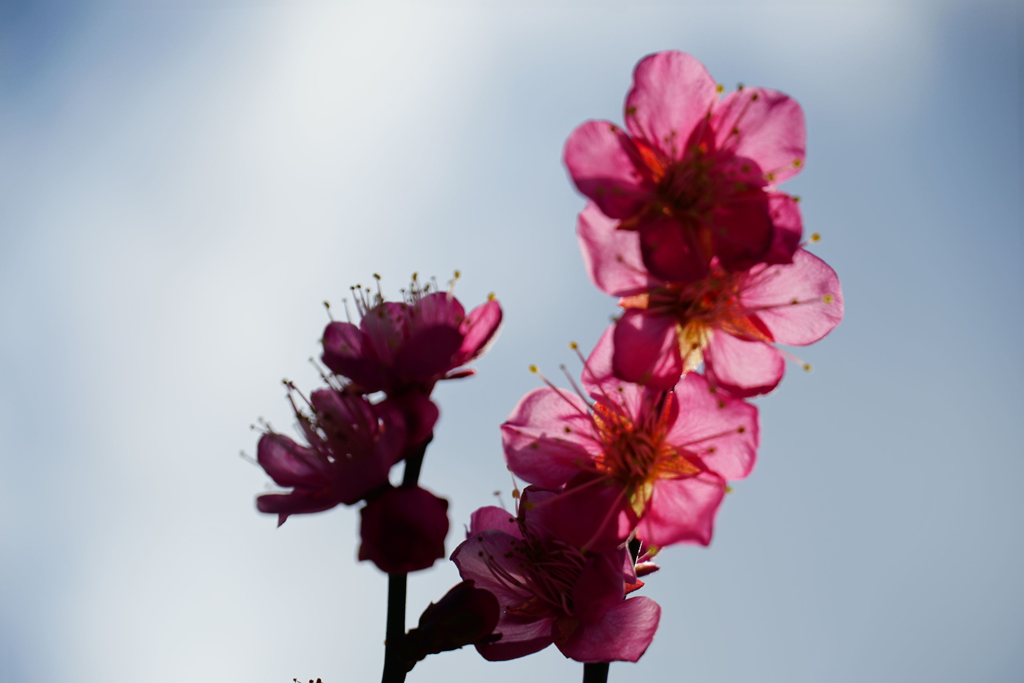 3月並みの陽気と言われるここ数日 慌てて咲きはじめの梅を取りに行きました 逆光でうまい具合に透けてくれましたが、ピントが甘い こういう半透明なものはピントが合いにくくてて、だんだん船酔い状態になる なんてことないですか?