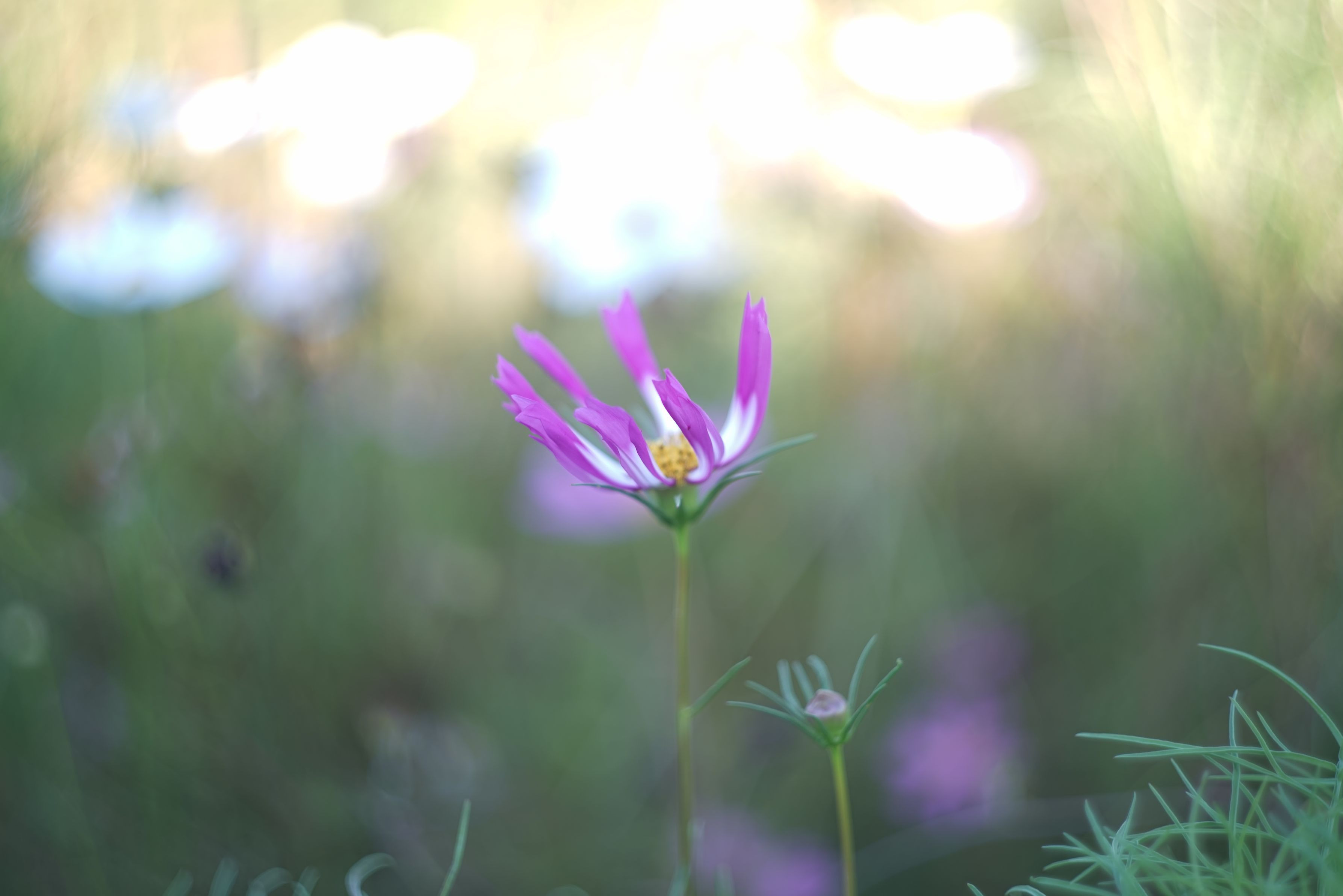 木陰にひっそりと咲いているコスモスに思わずシャッターを切らずにいられませんでした。