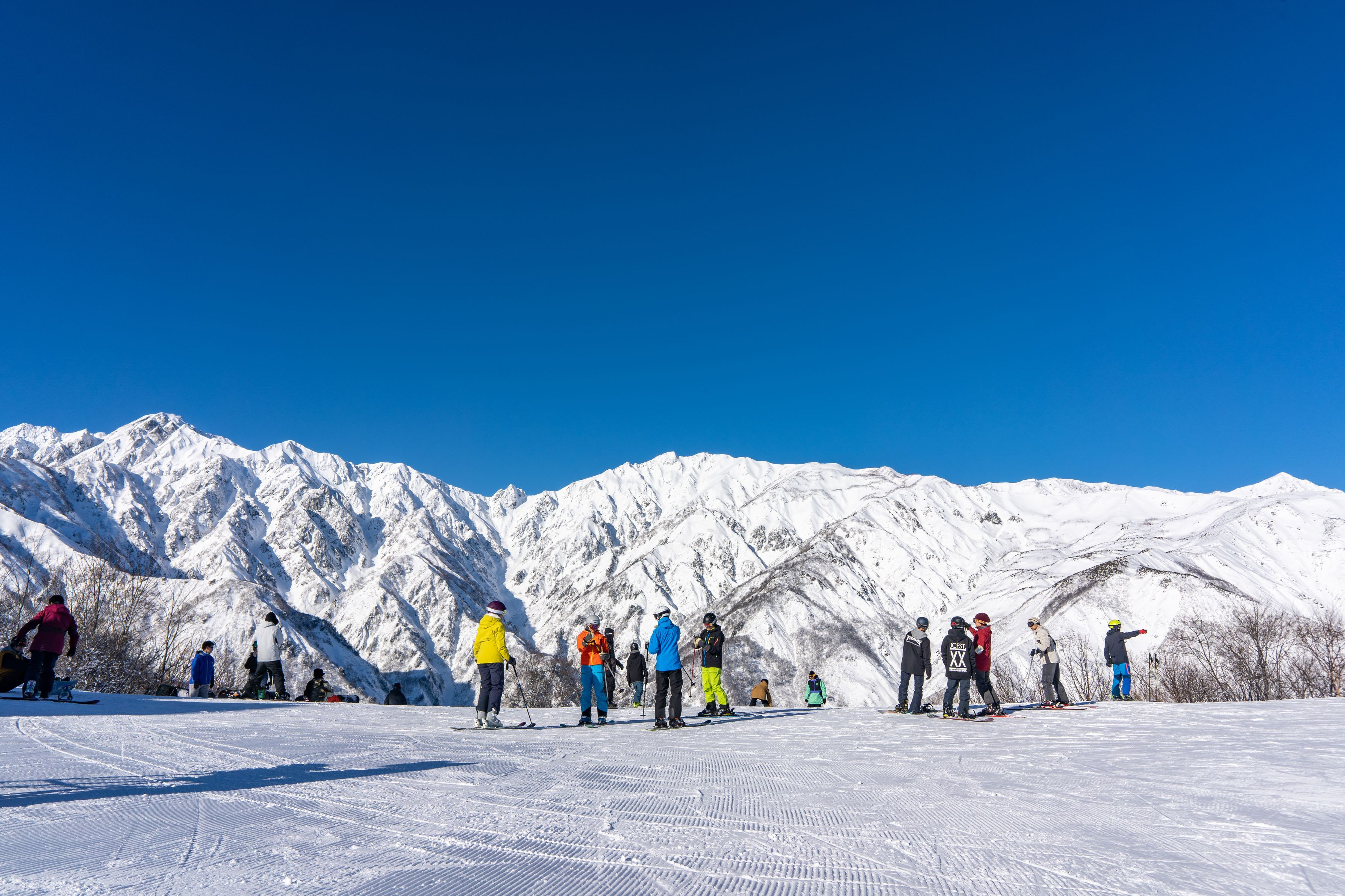 真っ青な空と白馬岳。HAKUBA47スキー場で撮影しました。 右中央付近に黒菱が綺麗に見えてしまっています。今年の雪の少なさを象徴しているのかもしれません。