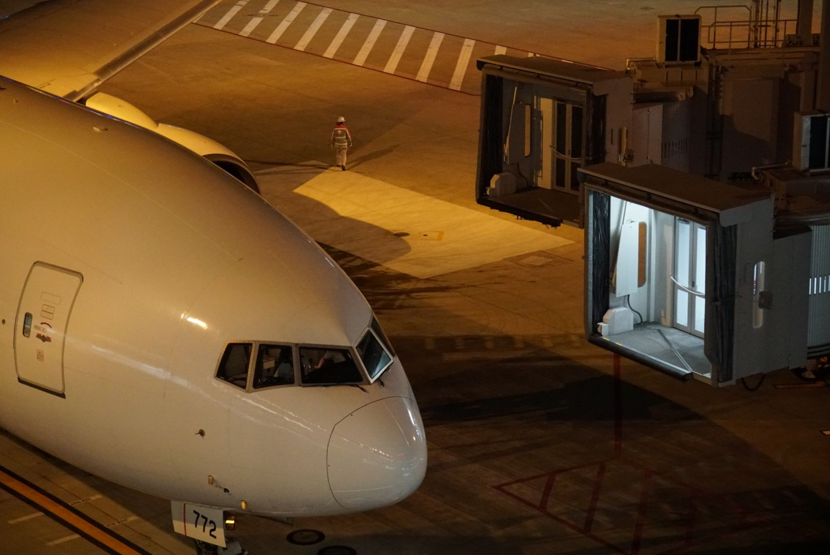 福岡空港にて。 出発便のボーディングブリッジが離れたところを狙いました。