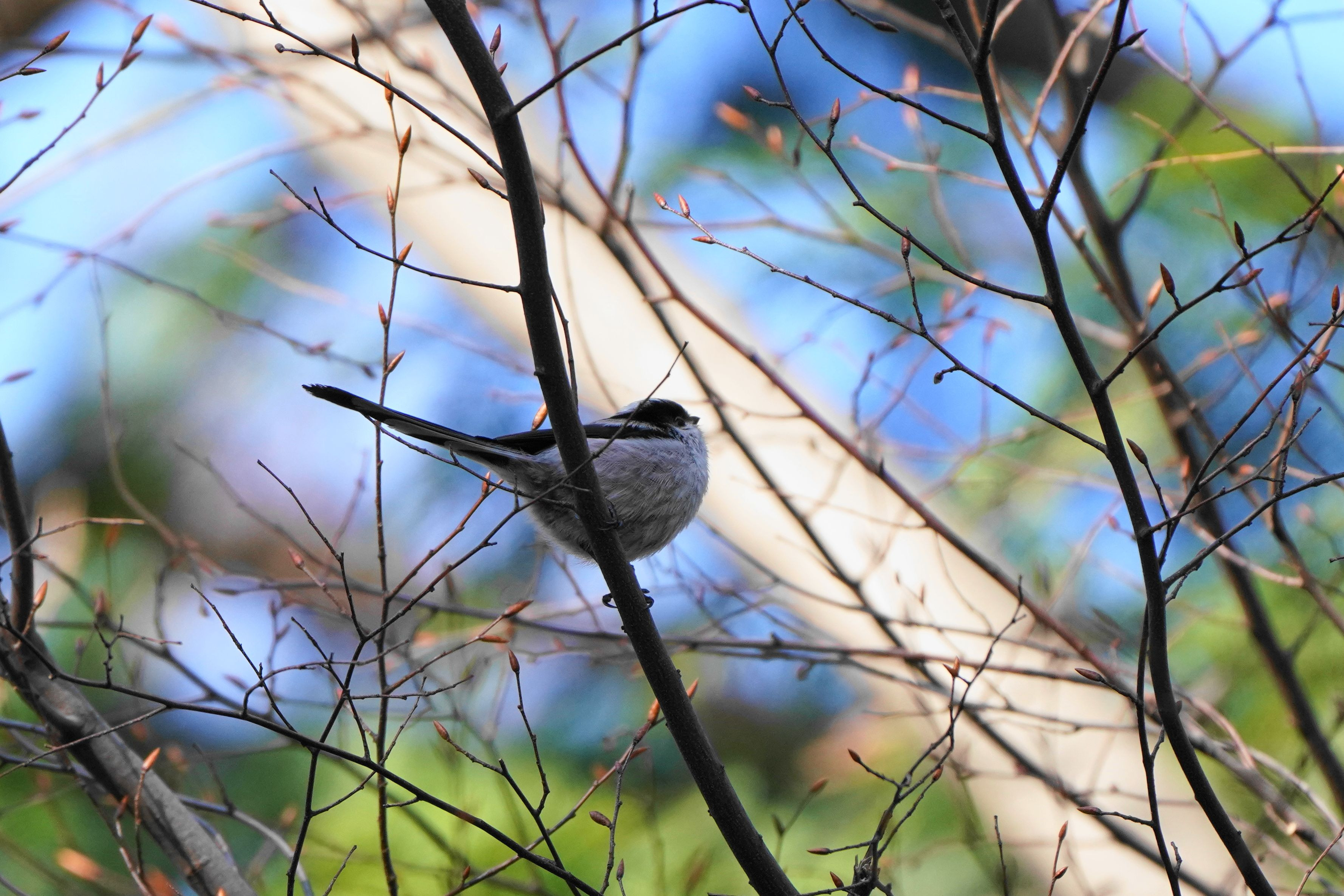 エナガであっていますでしょうか? 丸くてカワイイですね♪ 大いに鳥ミングありです (^^;