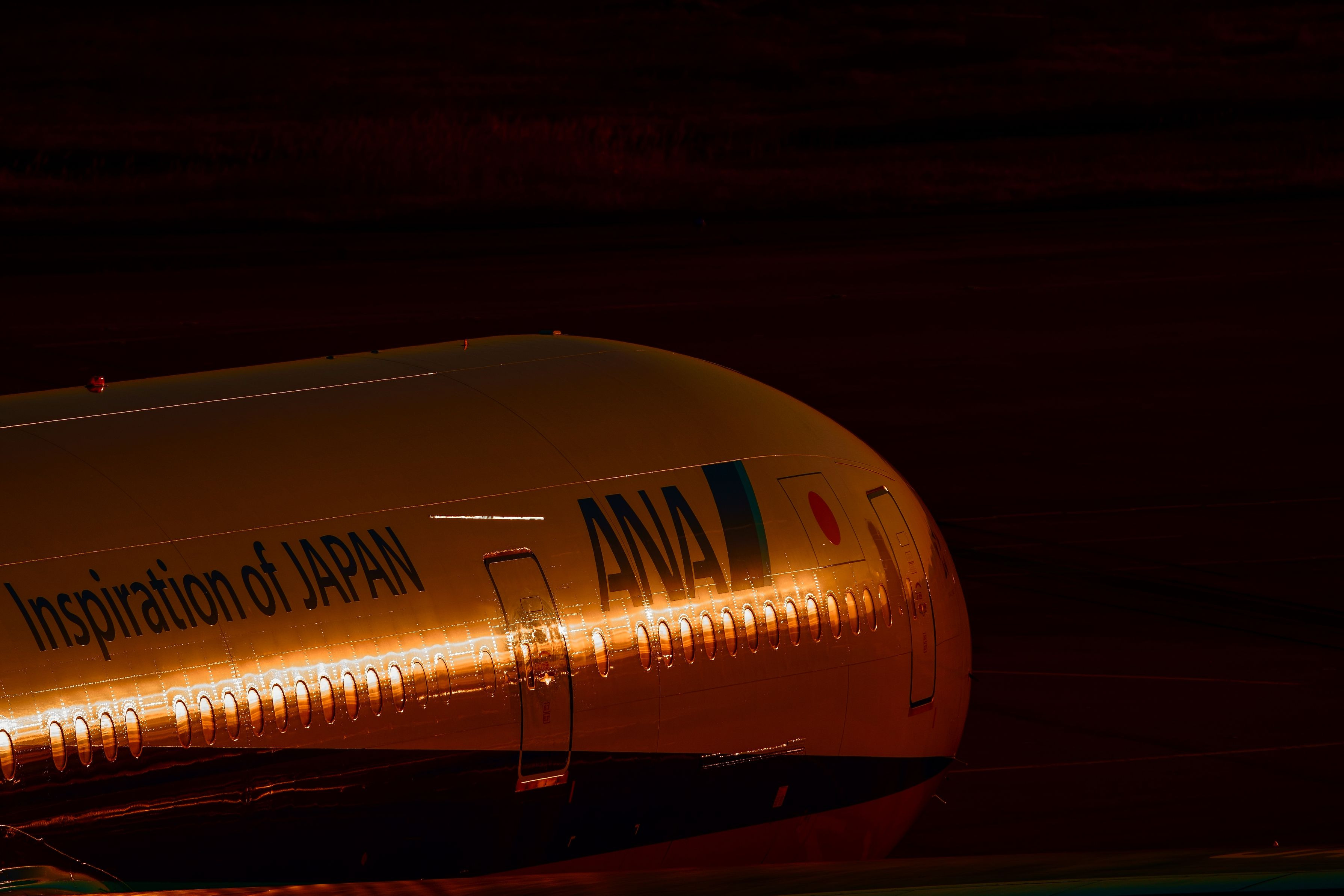 日の出の光を機体にいっぱい浴び、輝いて居ましtあ。