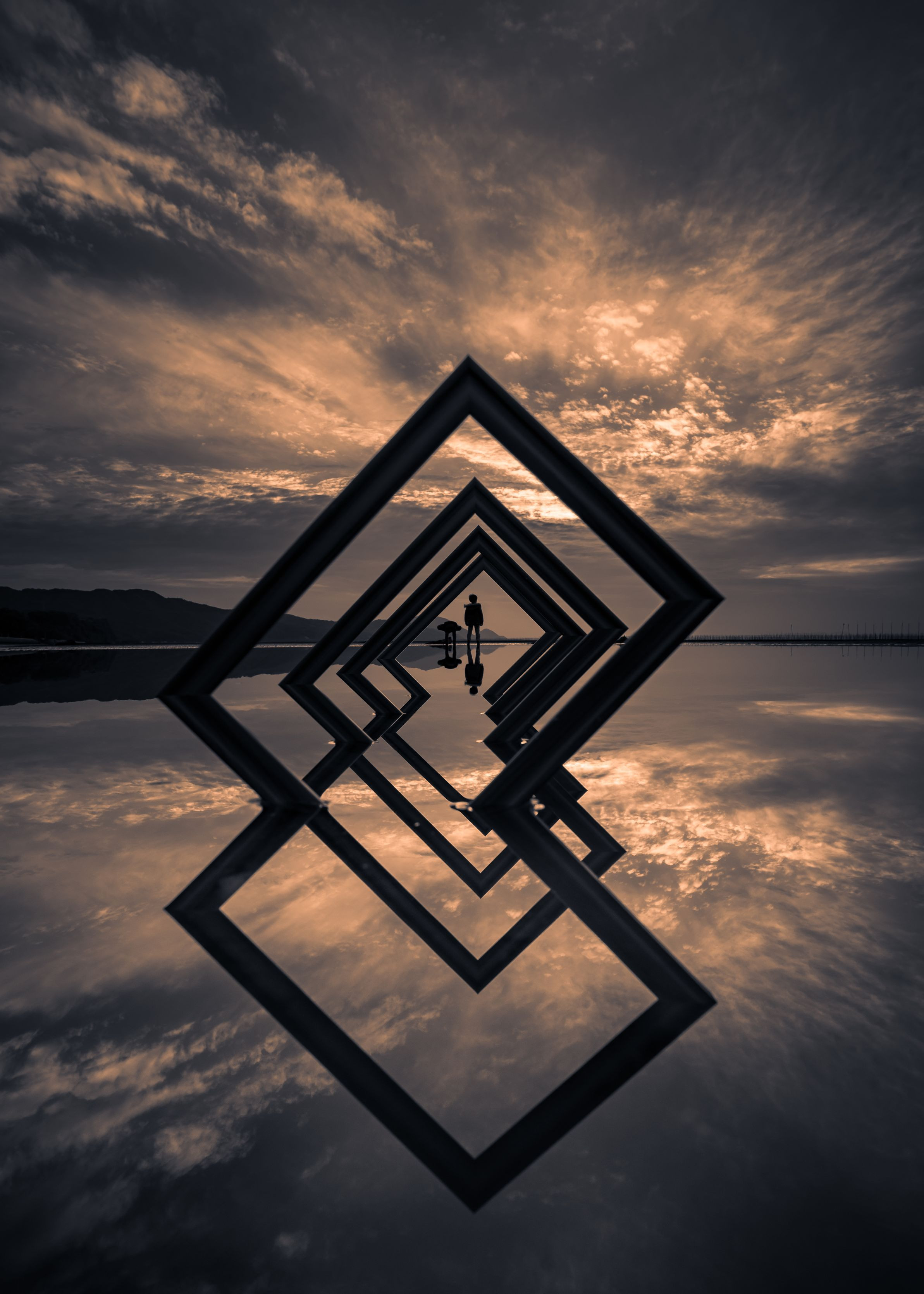 リフレクション遊びをウト塩湖にて。