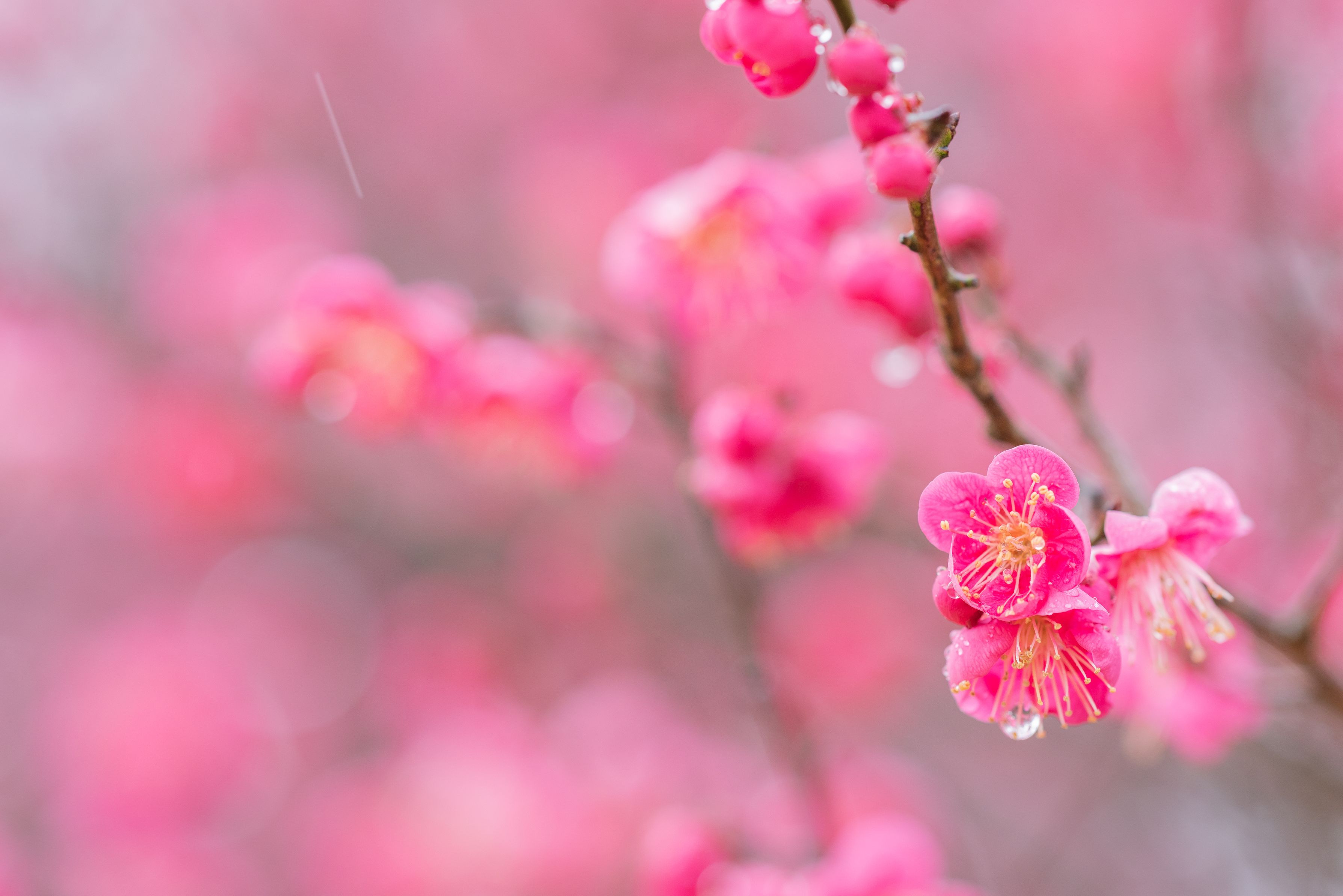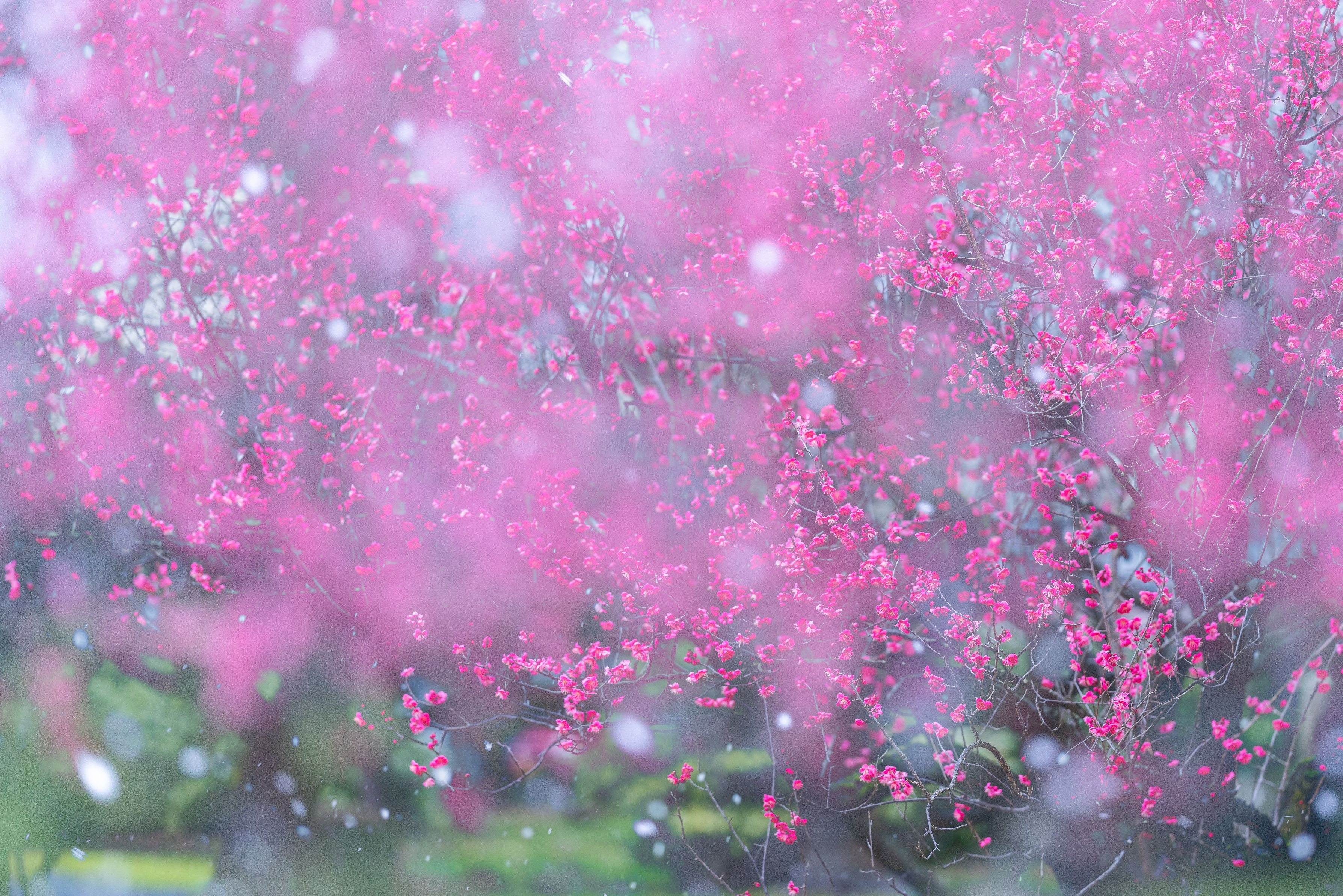 例年より早く開花した梅でしたが、冷たい雨が降りかかり夕方からは雪に変わりました。3枚目は雪の印象を表現するために合成しています。