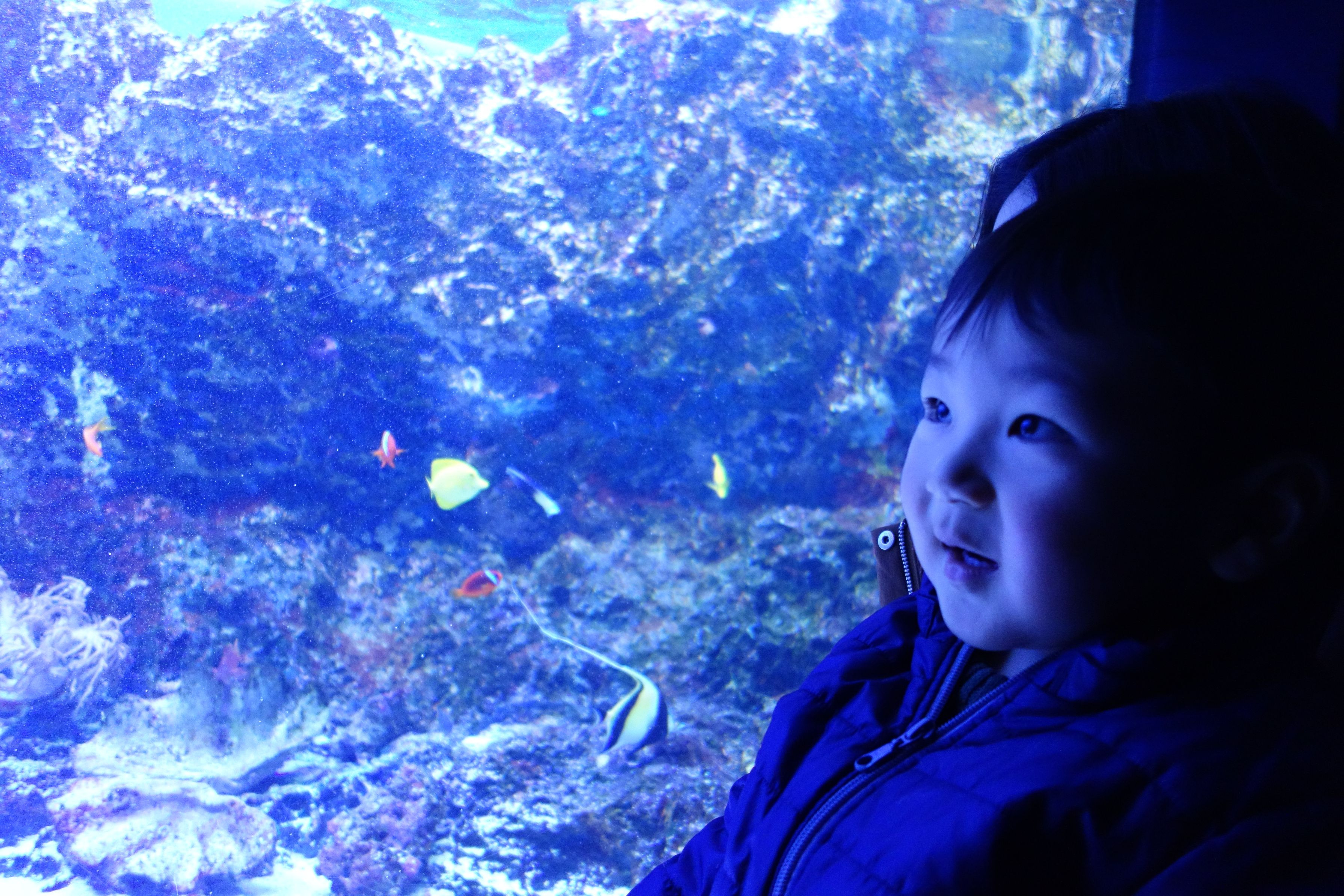 お出かけ先の定番、水族館にて。