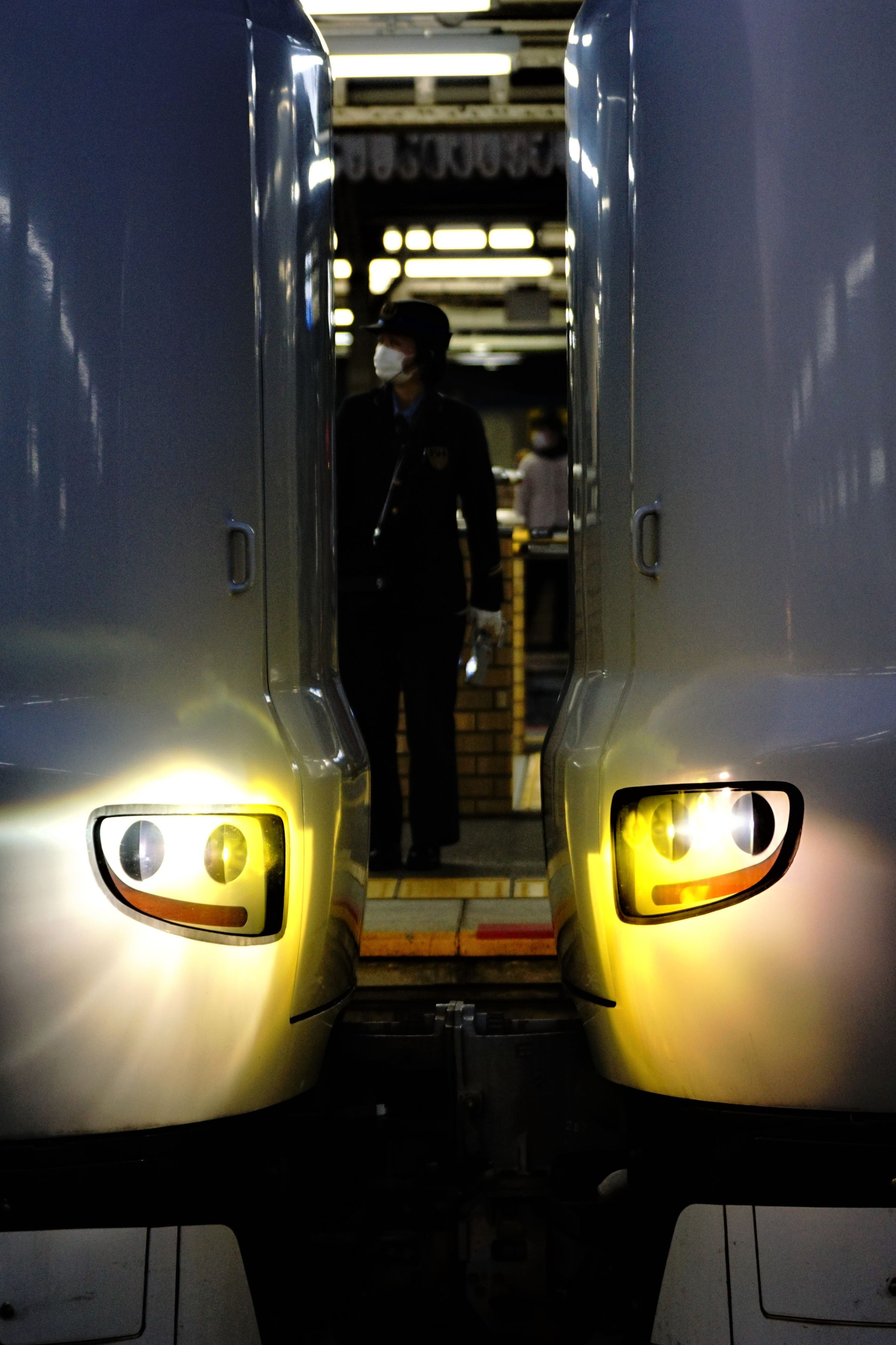 287系特急電車の下膨れがムーミン似と言われていますが、連結器を挟んで顔を突き合わし目を輝かせているむーみん似のショットです。