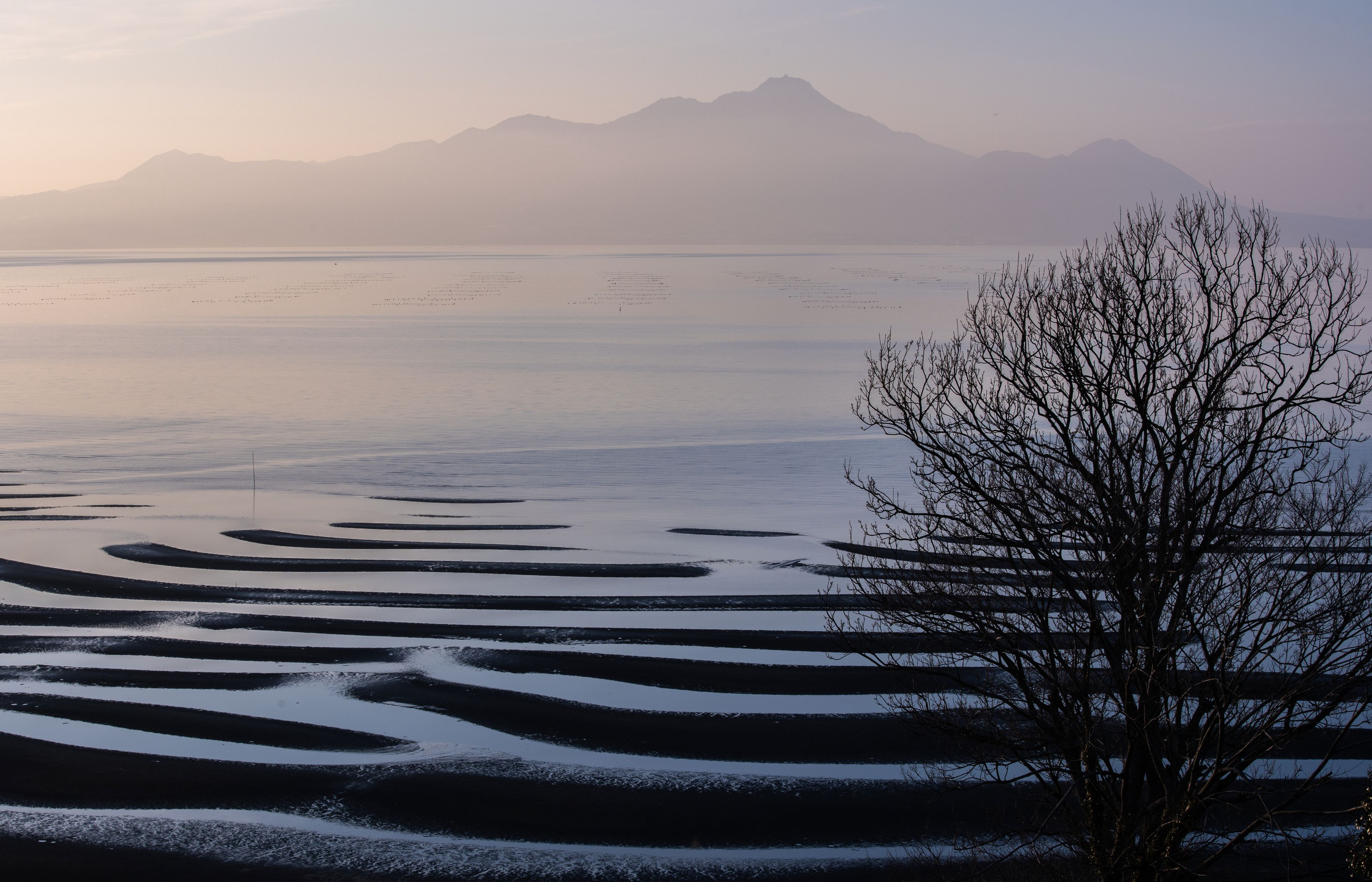 熊本県宇土市の北岸に位置する「おこしき海岸」は潮が引くと美しい女性的な曲線美を描いた砂紋が現れます。